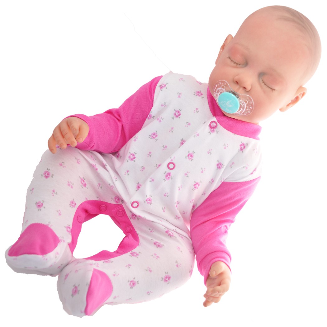 Pajacyk niemowlęcy ze stópkami, zapinany na bezniklowe napki przez całą długość ubranka oraz w kroku tak aby łatwo można było ubrać i przewinąć maluszka. Wykonany z 100% bawełny dzięki czemu nie podrażnia skóry dziecka.