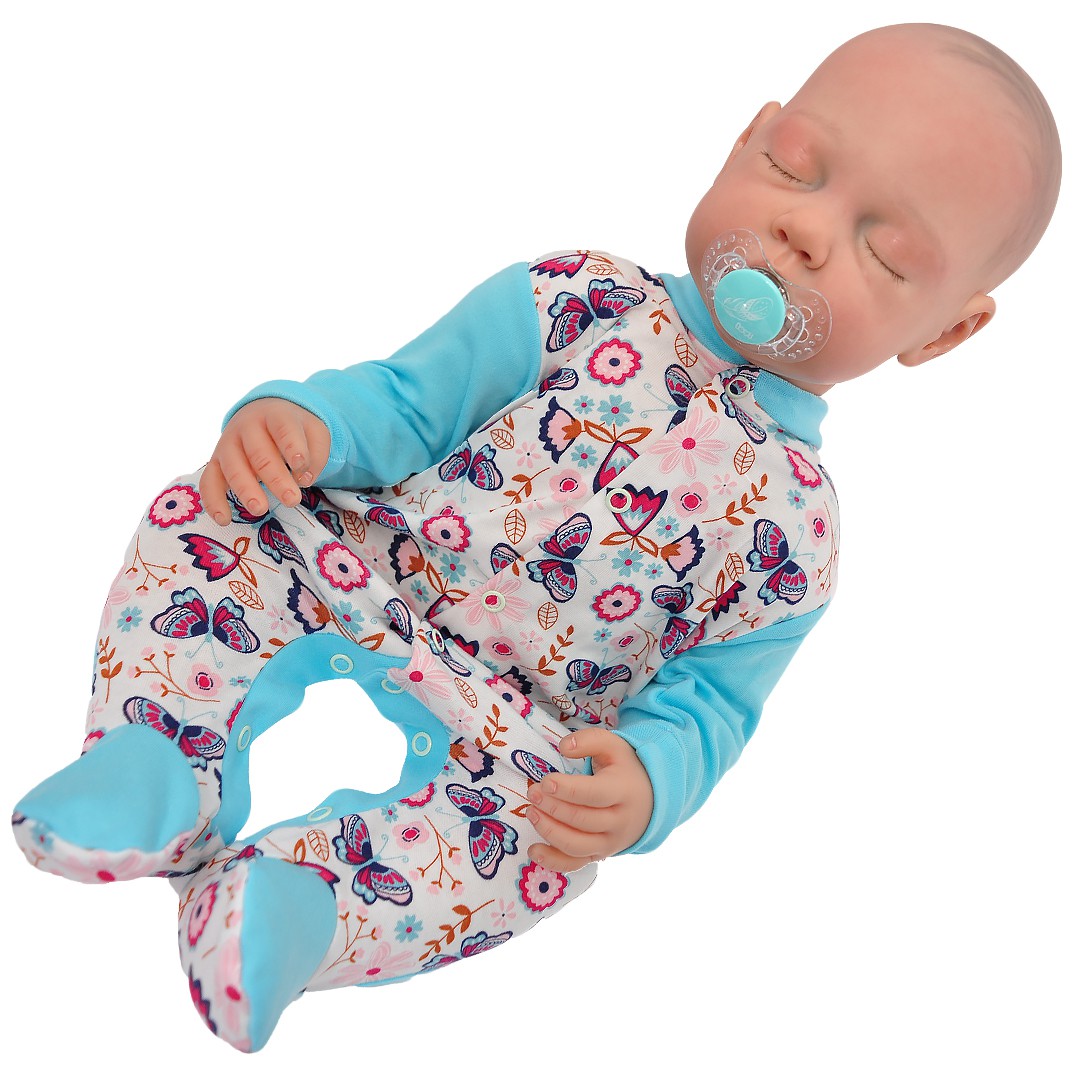 Pajac pajacyk bawełniany, lazurowy w motyle wzór 345L
