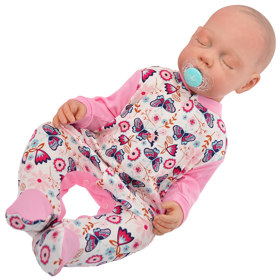 Pajac bawełniany dziewczęcy w kolorze różowym w motyle i kwiaty.