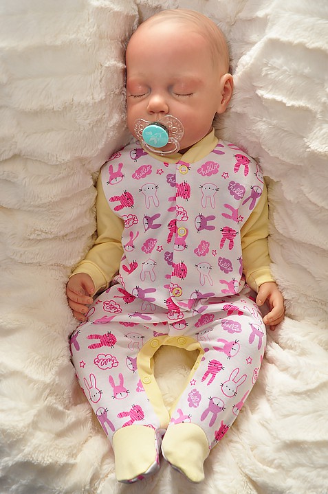 * pajacyk zapinany jest na napki przez całą długość ubranka oraz w kroku tak aby łatwo można było ubrać i przewinąć maluszka