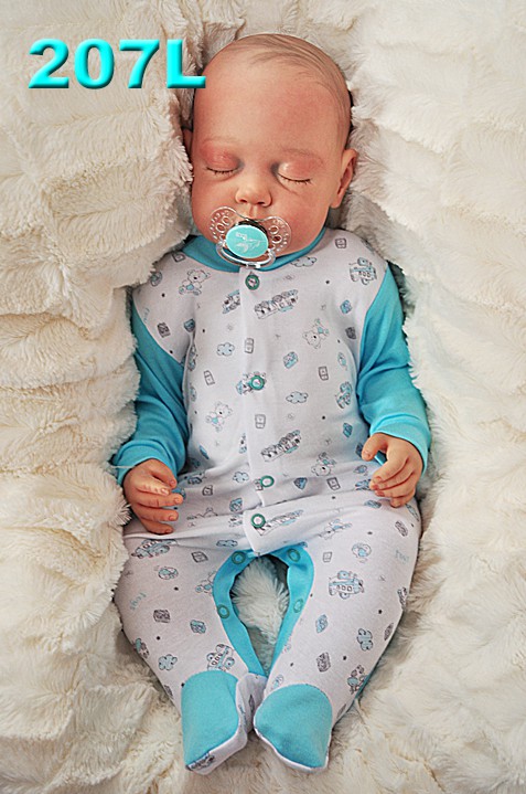 Pajacyk niemowlęcy ze stópkami, zapinany na bezniklowe napki przez całą długość ubranka oraz w kroku tak aby łatwo można było ubrać i przewinąć maluszka. Wykonany z 100% bawełny dzięki czemu nie podrażnia skóry dziecka.