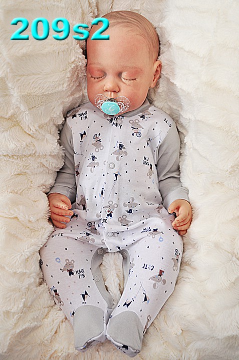 Pajac pajacyk bawełniany szaro-biały w myszki wzór 209s2