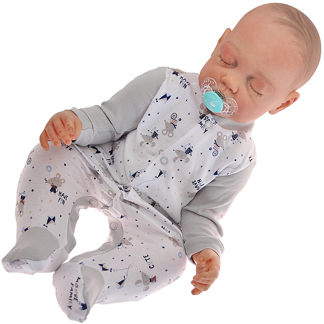 Pajac bawełniany niemowlęcy w szaro-białej kolorystyce z nadrukiem myszek.
