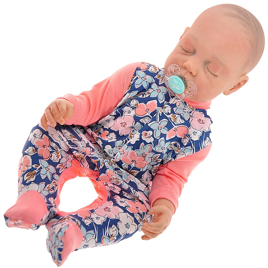 Pajac pajacyk bawełniany niebiesko-łososiowy w kwiaty wzór 357Ł