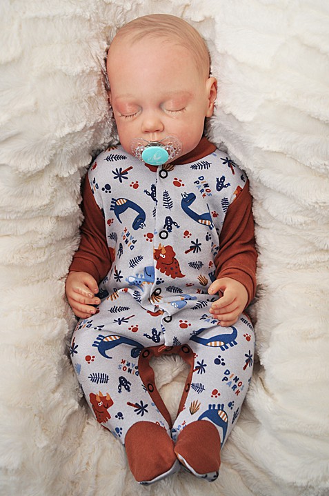 Pajac pajacyk bawełniany brązowo-szary w dionozaury wzór 215BR