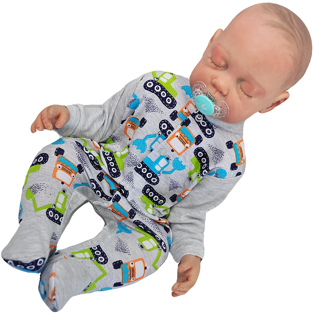 Pajac pajacyk bawełniany szary w koparki wzór 218S