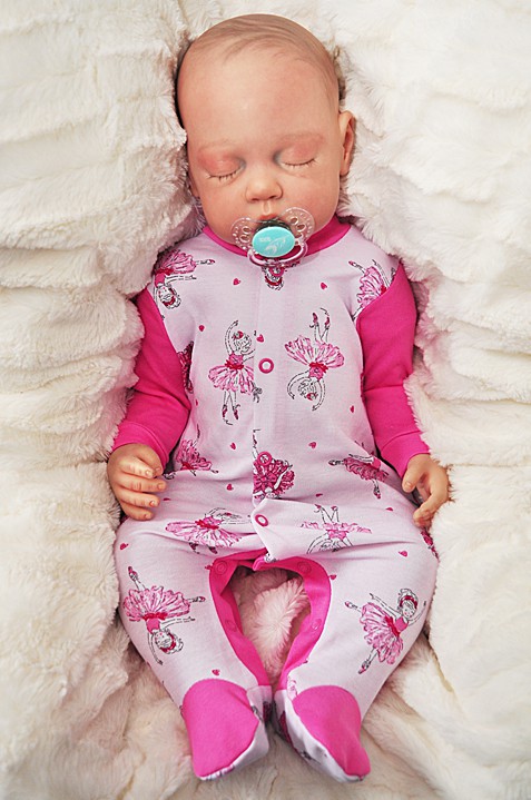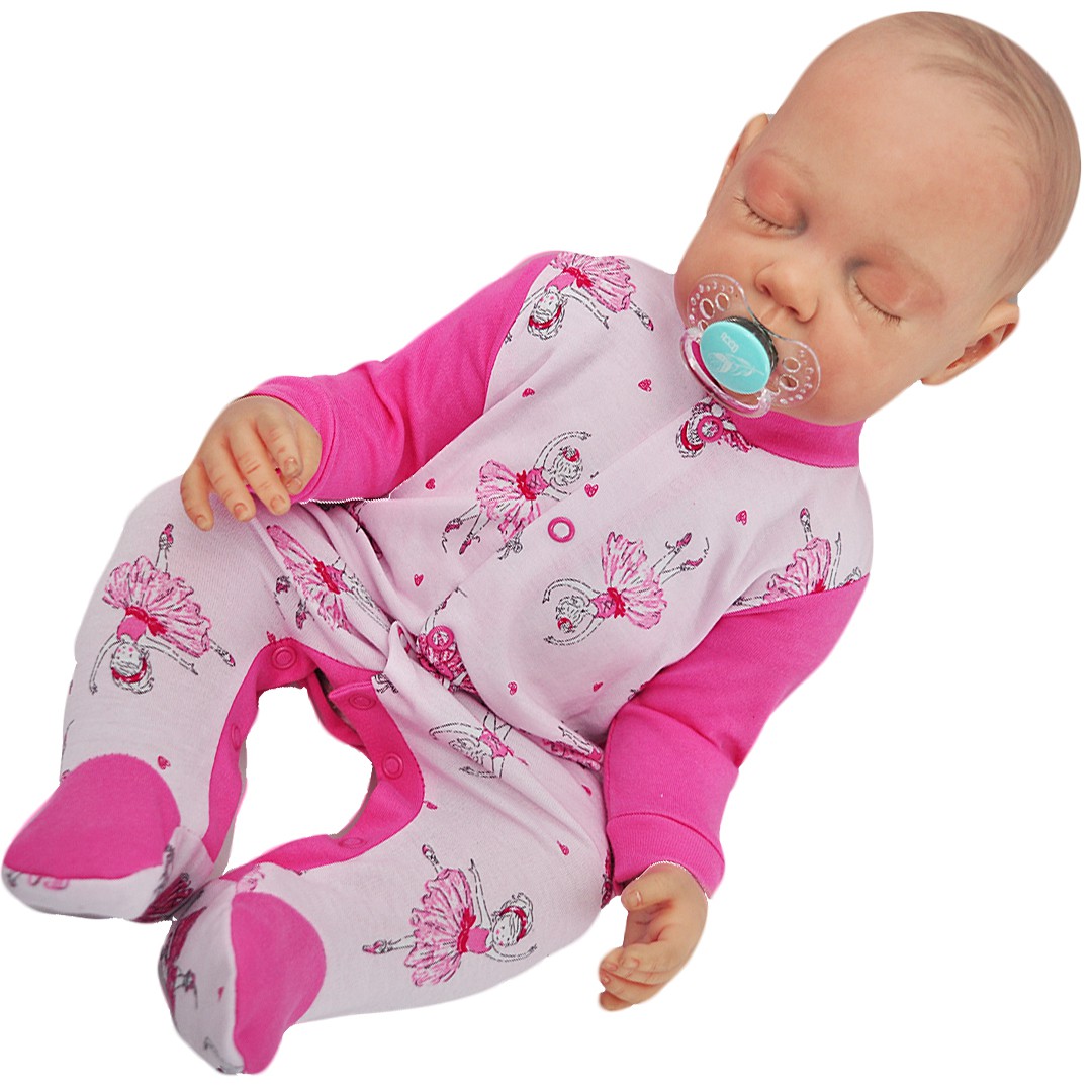 Pajac bawełniany niemowlęcy dla dziewczynki w różowej kolorystyce z nadrukiem w baletnice.