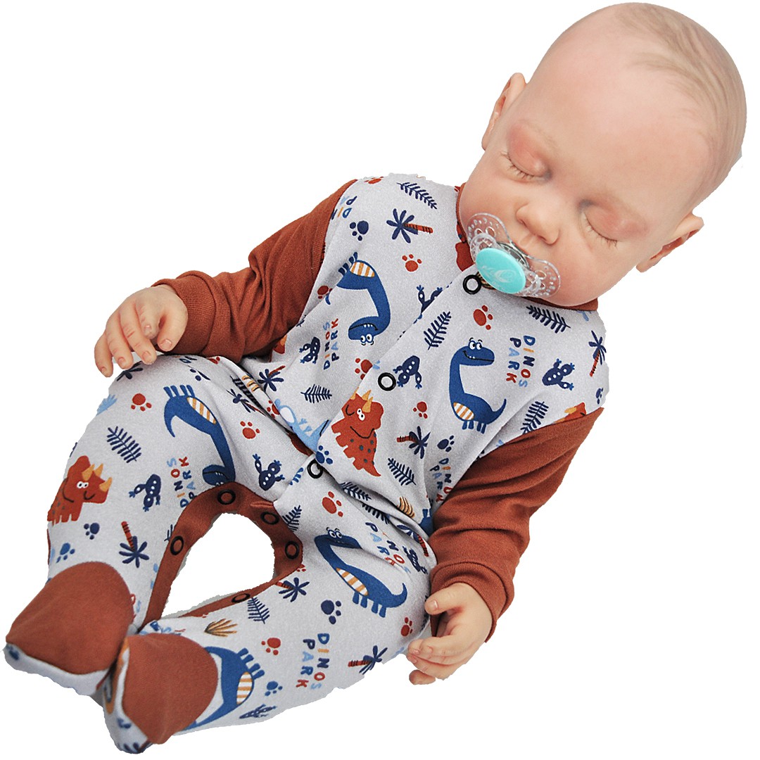 WCZEŚNIAK pajac pajacyk bawełniany brązowo-szary w dionozaury r.50 wzór 215BR