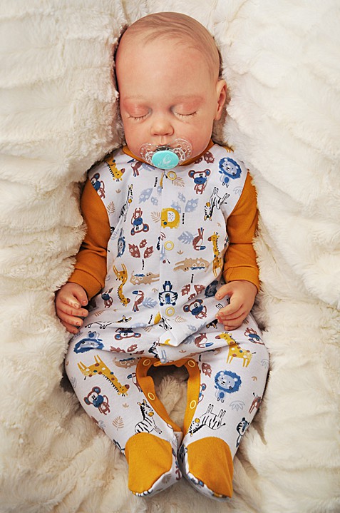 * pajacyk zapinany jest na napki przez całą długość ubranka oraz w kroku tak aby łatwo można było ubrać i przewinąć maluszka