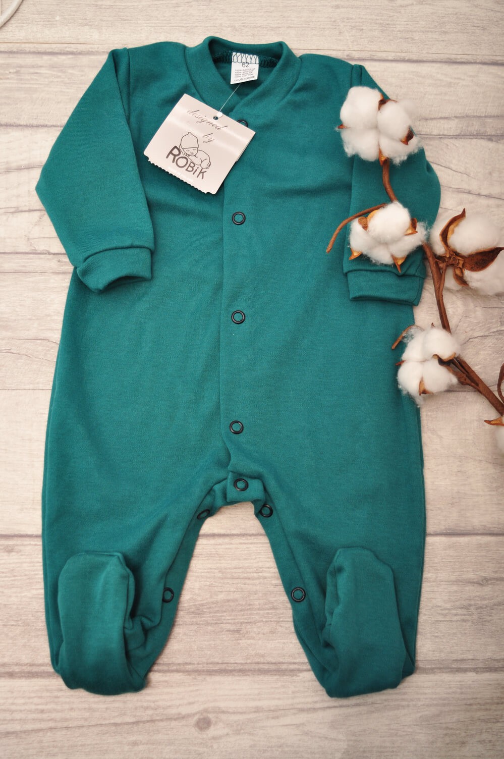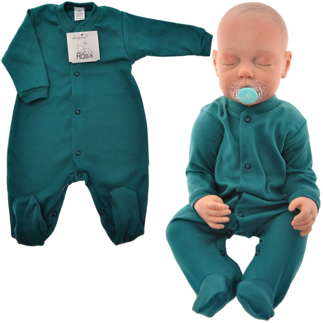 Pajac bawełniany niemowlęcy w kolorze zieleni butelkowej.
