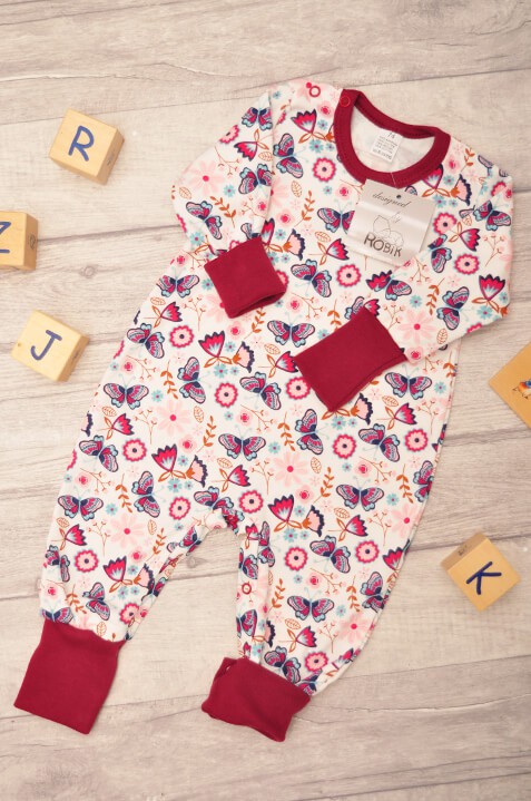 Pajac bez stópek RAMPERS bordowy w motyle pajacyk rosnący wz. 367bor
