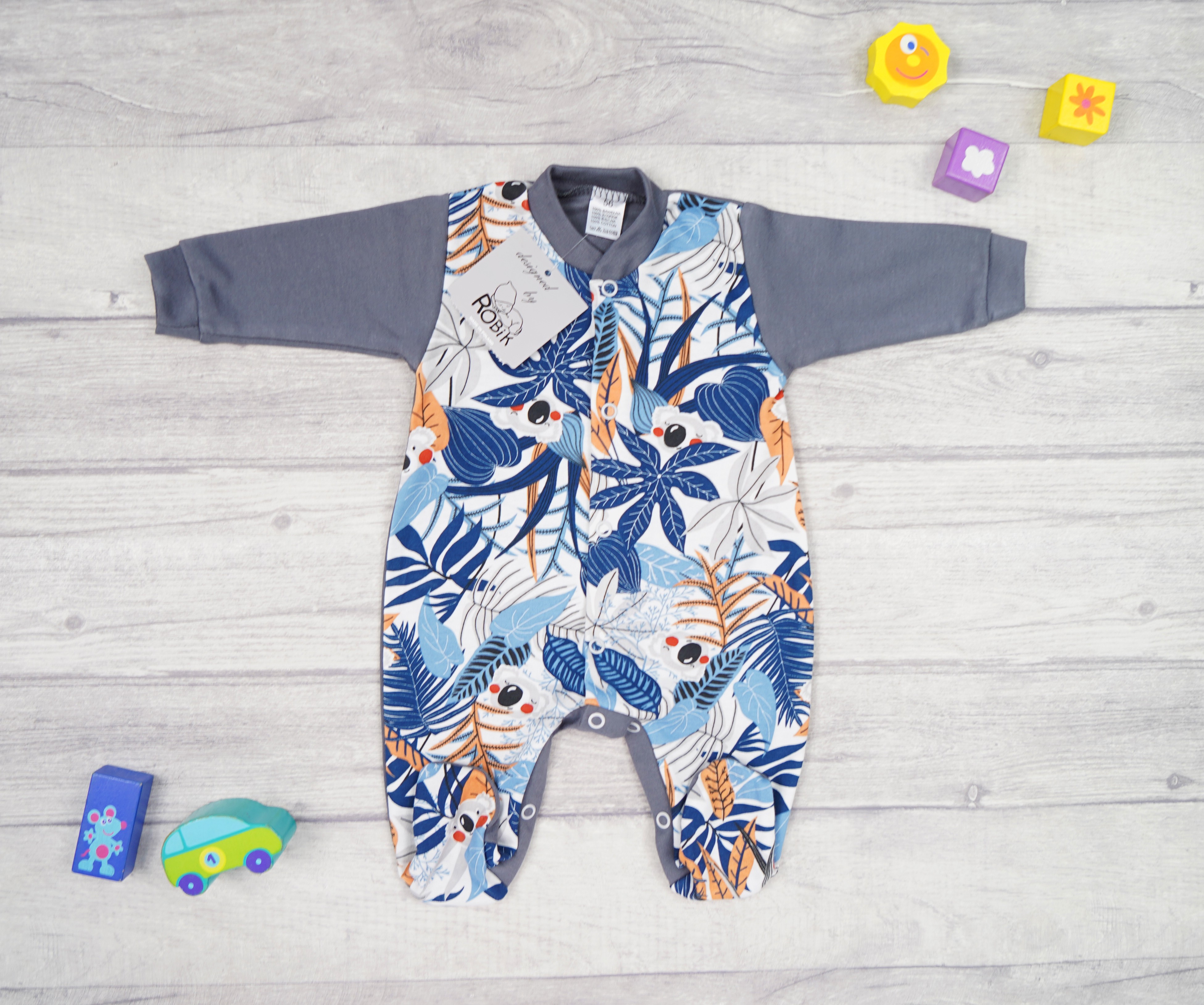 Pajacyk niemowlęcy ze stópkami, zapinany na bezniklowe napki przez całą długość ubranka oraz w kroku tak aby łatwo można było ubrać i przewinąć maluszka. Wykonany z 100% bawełny dzięki czemu nie podrażnia skóry dziecka.