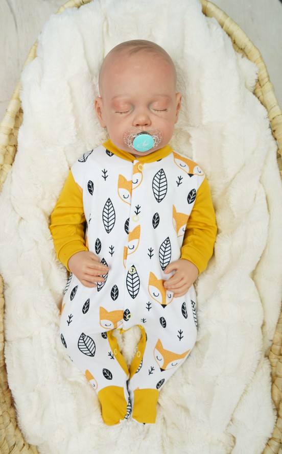 WCZEŚNIAK pajac pajacyk musztardowy w liski wzór 412