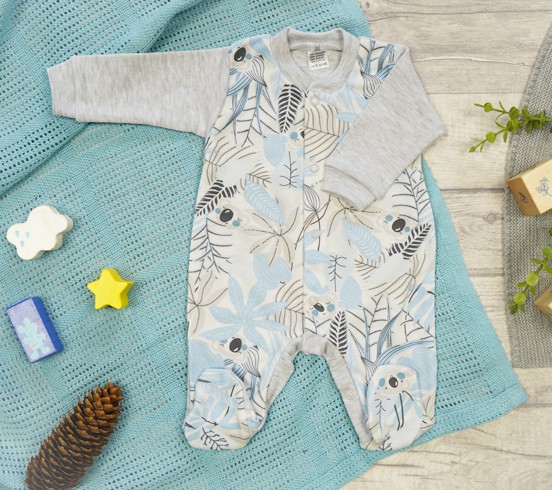 Pajacyk bawełniany ze stópkami, zapinany na bezniklowe napki przez całą długość ubranka oraz w kroku tak aby łatwo można było ubrać i przewinąć maluszka. Pajac niemowlęcy wykonany z 100% bawełny dzięki czemu nie podrażnia skóry dziecka.