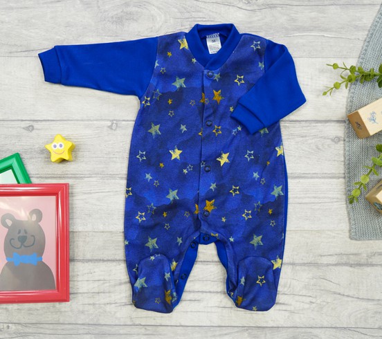 Pajac bawełniany niemowlęcy w kolorze chabrowym z nadrukiem w gwiazdki