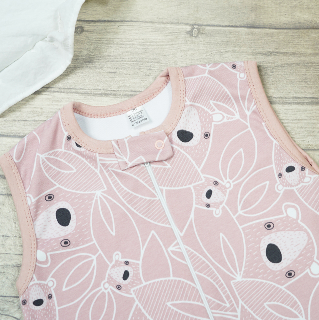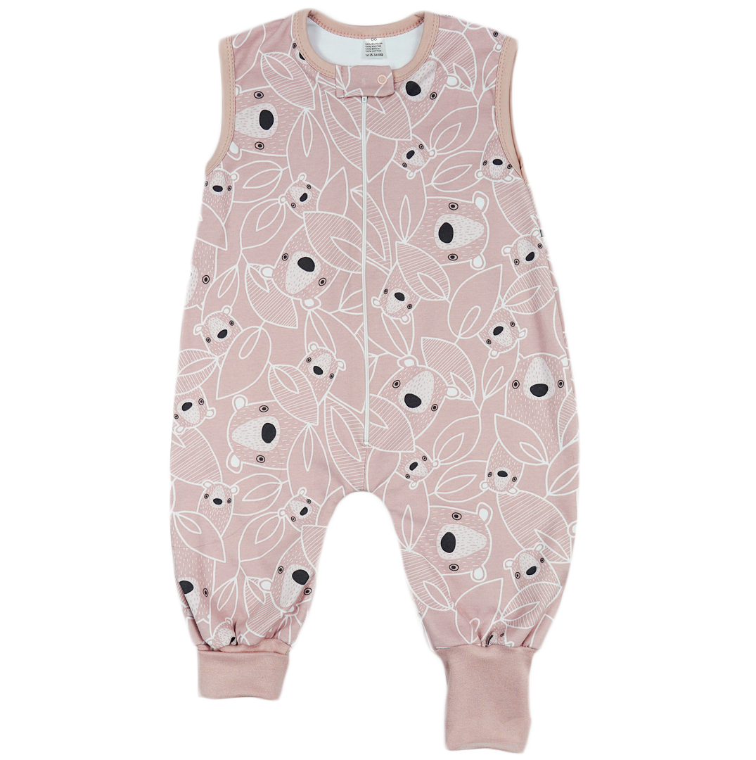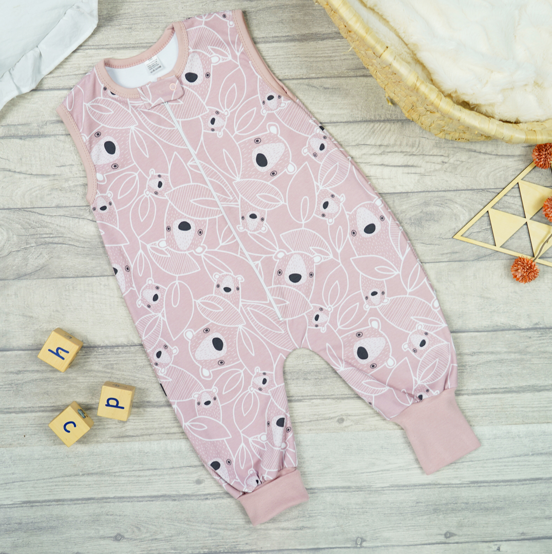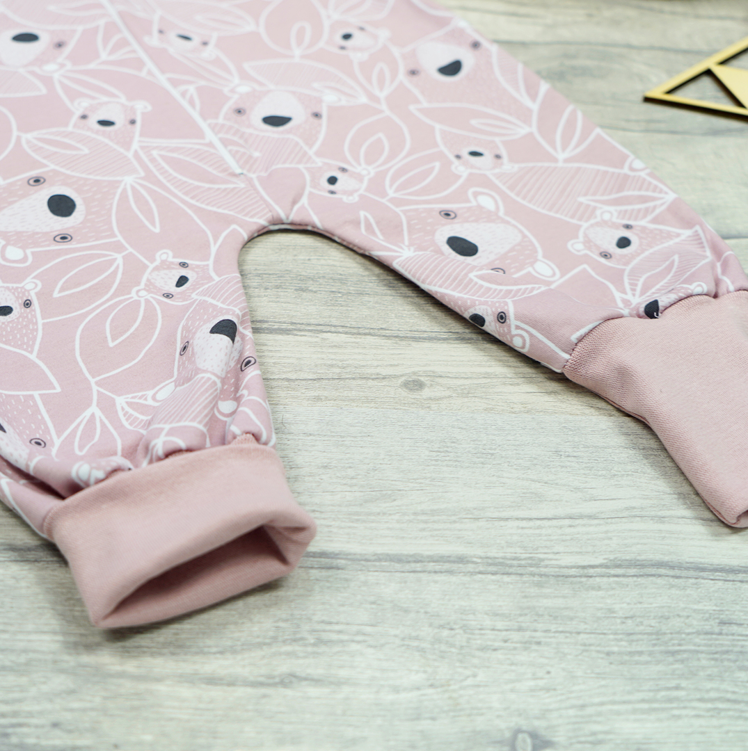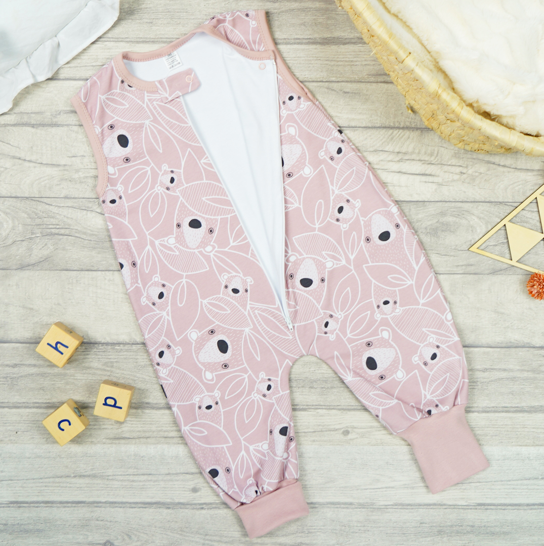 Bawełniany śpiworek rosnący z nogawkami zapewniający komfort oraz wygodę ruchów dziecka podczas snu. Zapinany na suwak oraz ochronną klamerkę z bezniklowym napem pod szyją. Uszyty z 2 warstw 100% bawełny, zewnętrzna w kolorze pudrowego różu drukowana w białe misie, wewnętrzna gładka, biała. Dekolt i ramiona wykończone wygodnymi, nieuciskającymi lamówkami dają możliwość wygodnego ubrania dziecka pod spodem. Nogawki śpiworka zapewniają swobodę ruchów nogami a możliwość ich odwinięcia sprawia, że dziecko tak szybko z niego nie wyrasta.