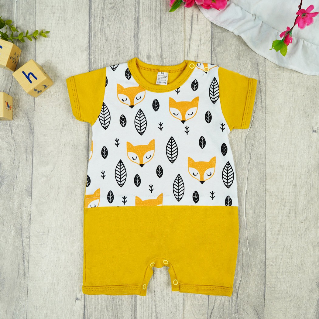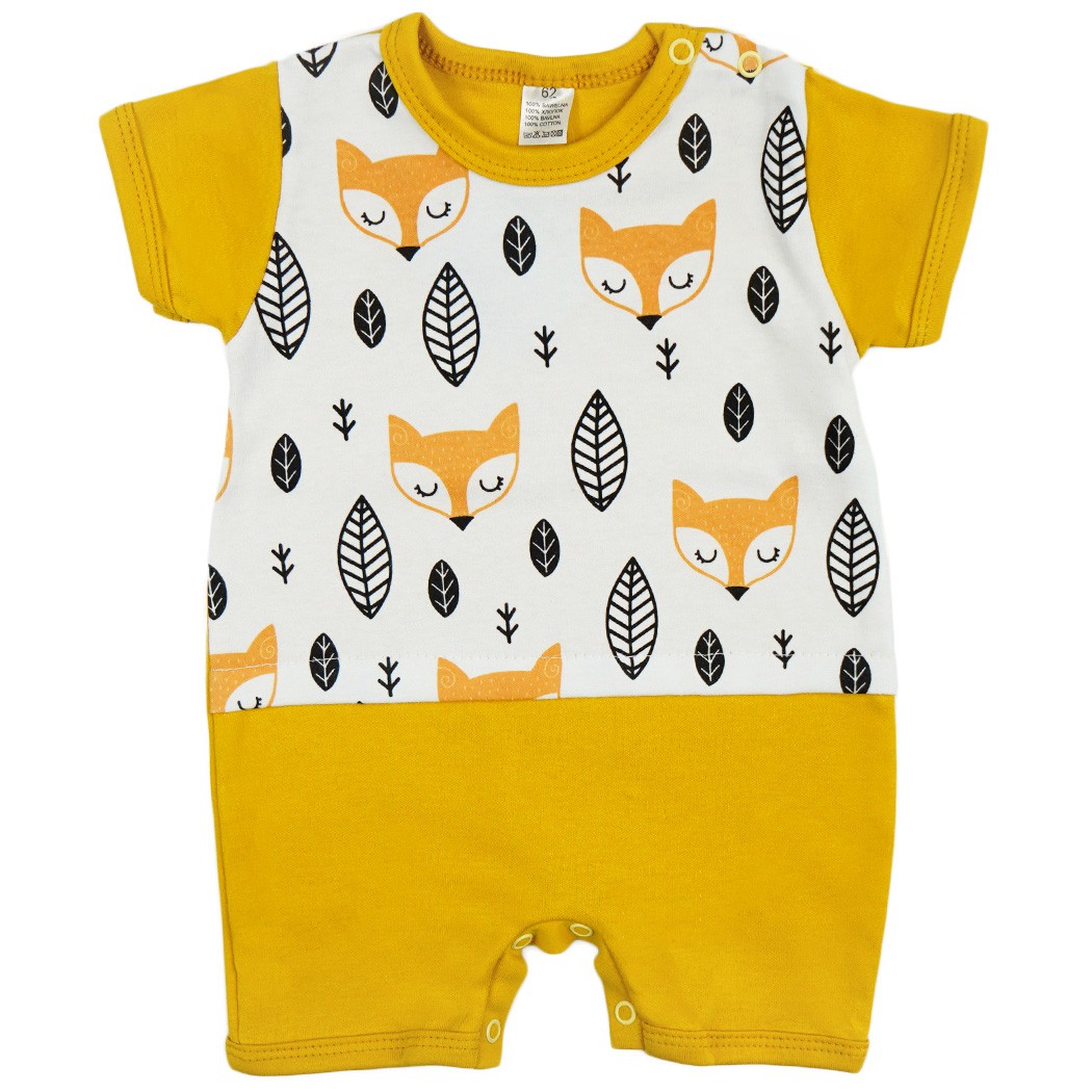 Musztardowy rampers w liski z krótkim rękawem na lato