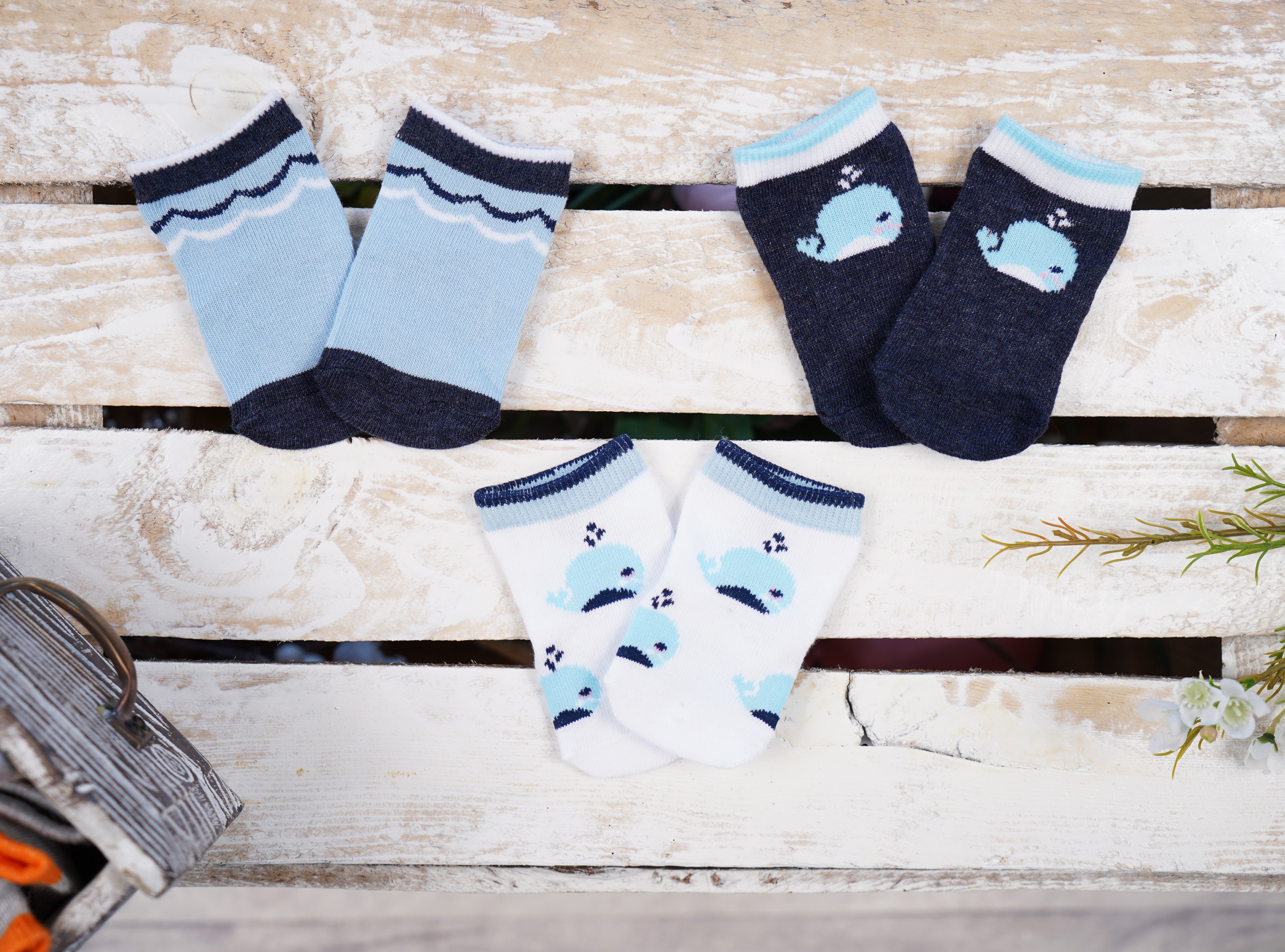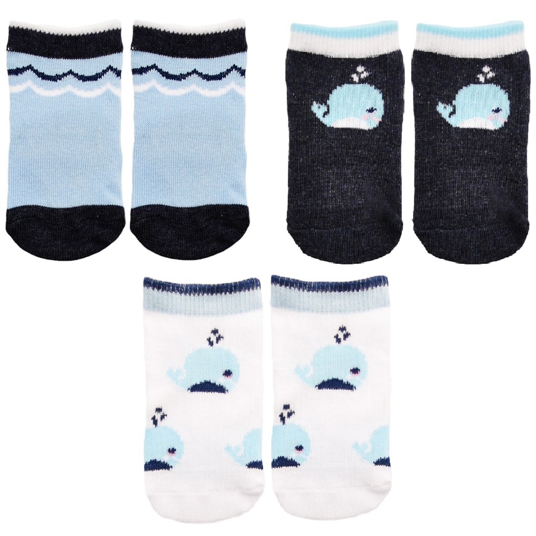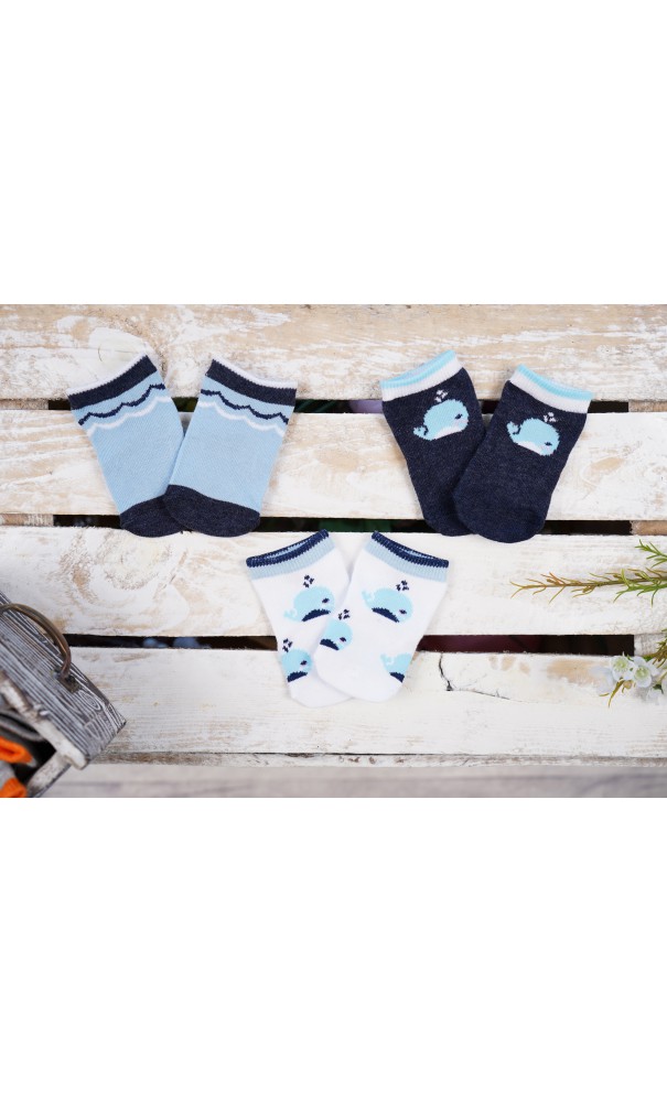 Skarpetki chłopięce z wzorami wielorybów i fal- komplet 3 par