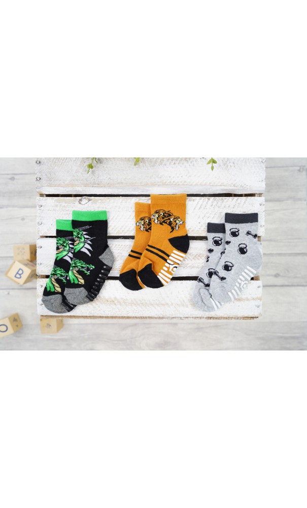Skarpetki półfrotte chłopięce z wzorami i ABSem- komplet 3 par