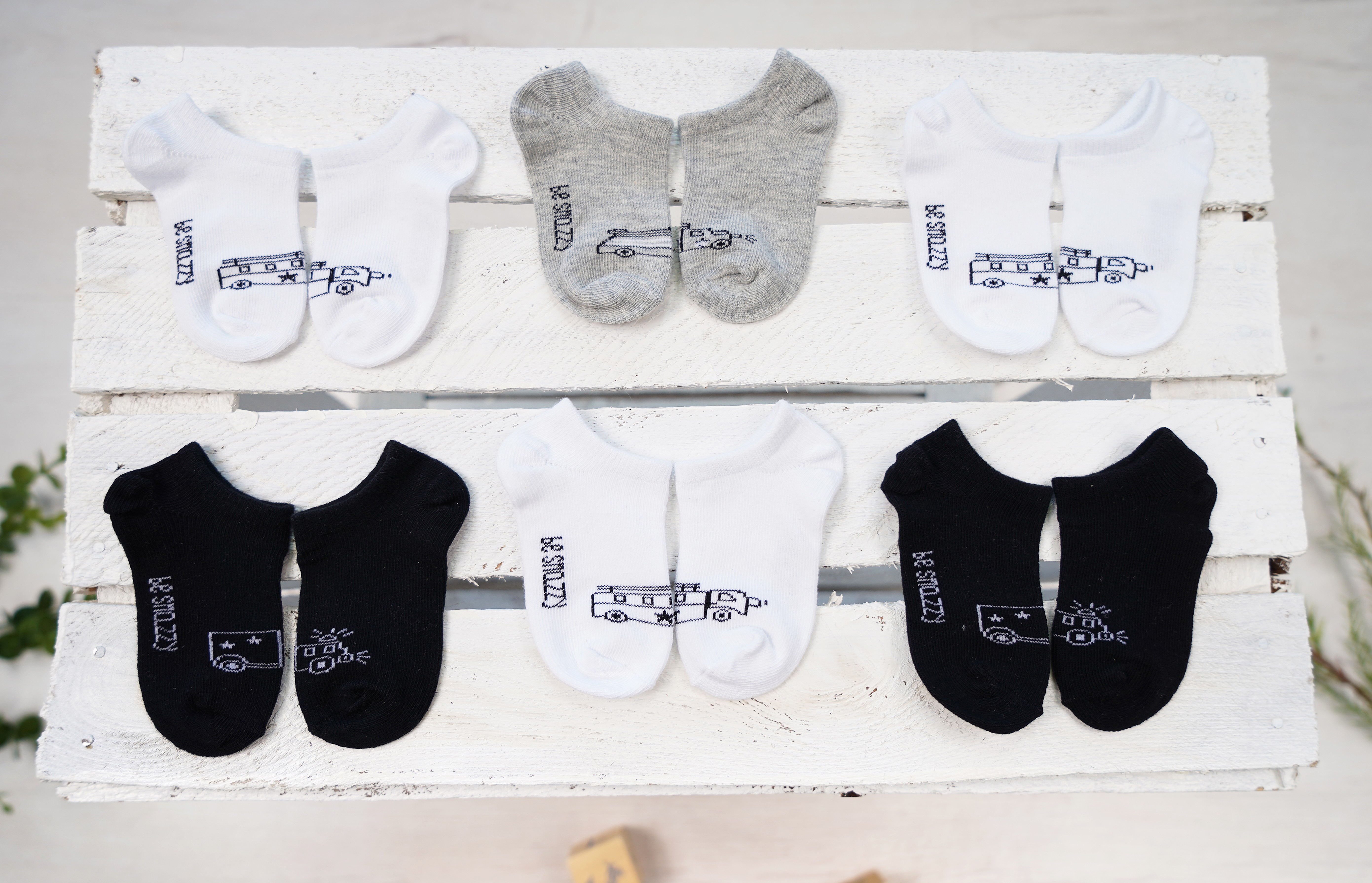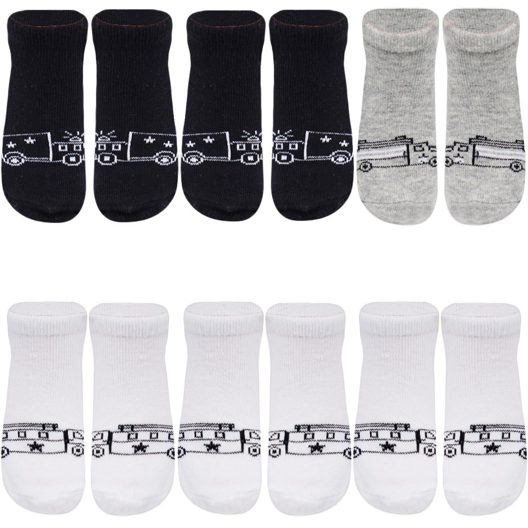 6-pak skarpetek z wzorem w auta ciężarowe w 3 kolorach: białym, czarnych, szarym