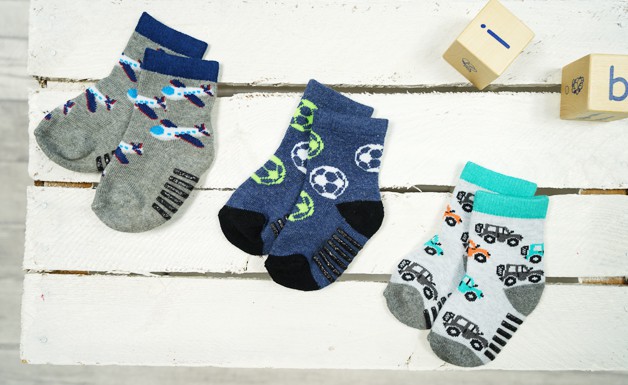 Skarpetki z motywem: piłek, samolotów i samochodów nie tylko jako ozdoba, ale przede wszystkim pełnią funkcję ochronną. Skarpety bawełniane dla chłopca przyczyniają się do utrzymania prawidłowej temperatury ciała dziecka. Zapewniają doskonały przepływ powietrza, dlatego można nosić je nawet w bardzo ciepłe dni.