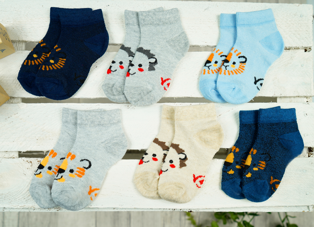 6pak skarpetki stopki chłopięce letnie ZWIERZAKI skarpety ażurowe C-54