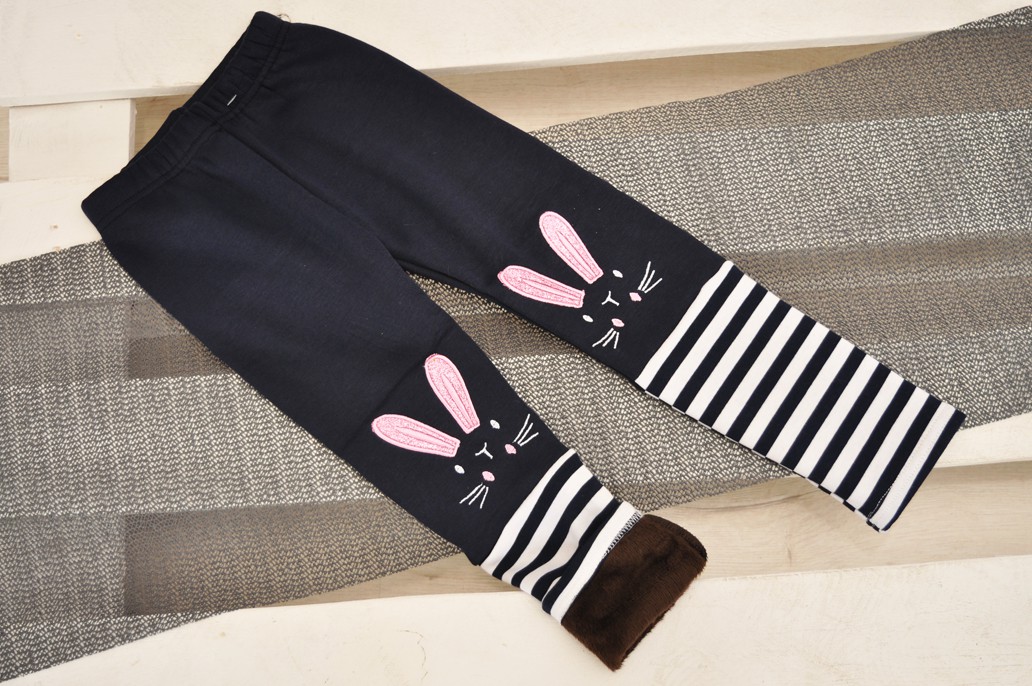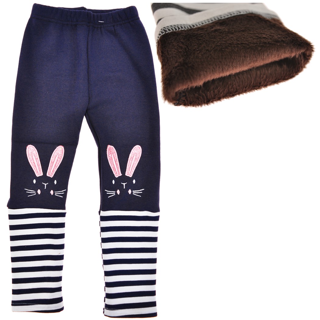 Granatowe legginsy ocieplane dla dziewczynki z królikami