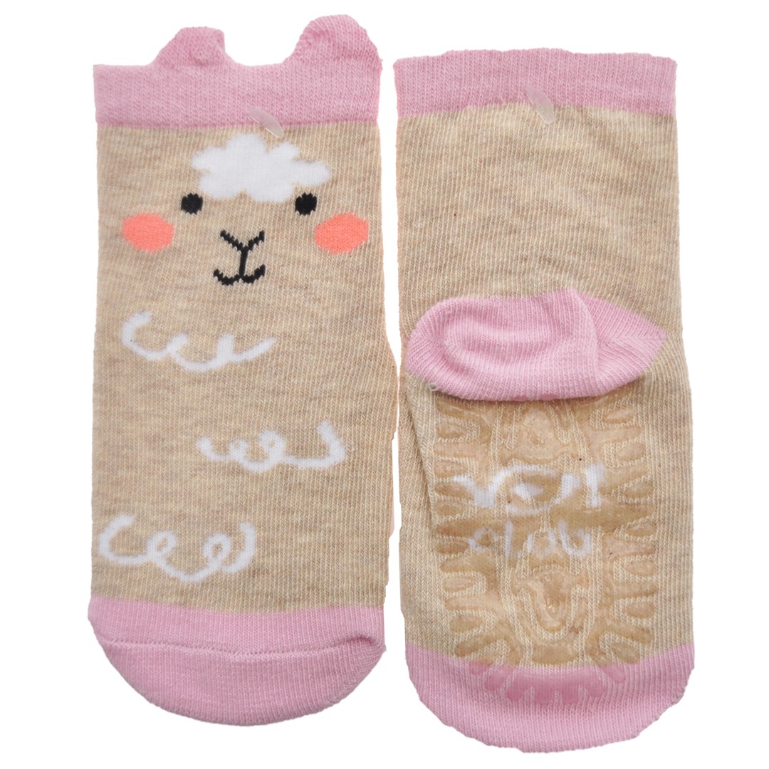 Skarpetki dla dziewczynek z silikonowym ABS. Antypoślizgowa podeszwa zabezpiecza przed niekontrolowanym poślizgiem, co jest szczególnie ważne kiedy nasze dzieci stawiają swoje pierwsze kroki a trójwymiarowe uszka i nadruk owieczki na oferowanych skarpetkach nadaje im szczególnego uroku.