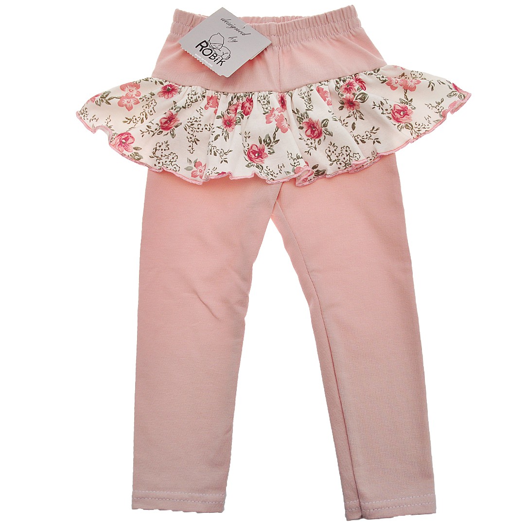 Dziewczęce pudrowe legginsy z falbanką w kwiaty.