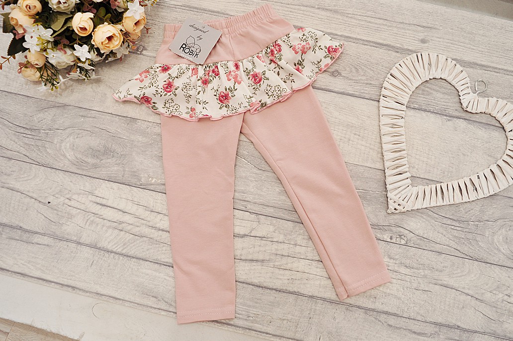 Pudrowe LEGINSY z falbanką w kwiaty GETRY wzór 354R