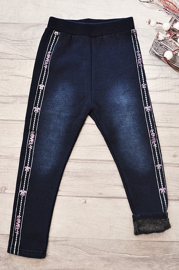 Granatowe LEGGINSY a'la jeans GETRY na futerku LOVELY brokat