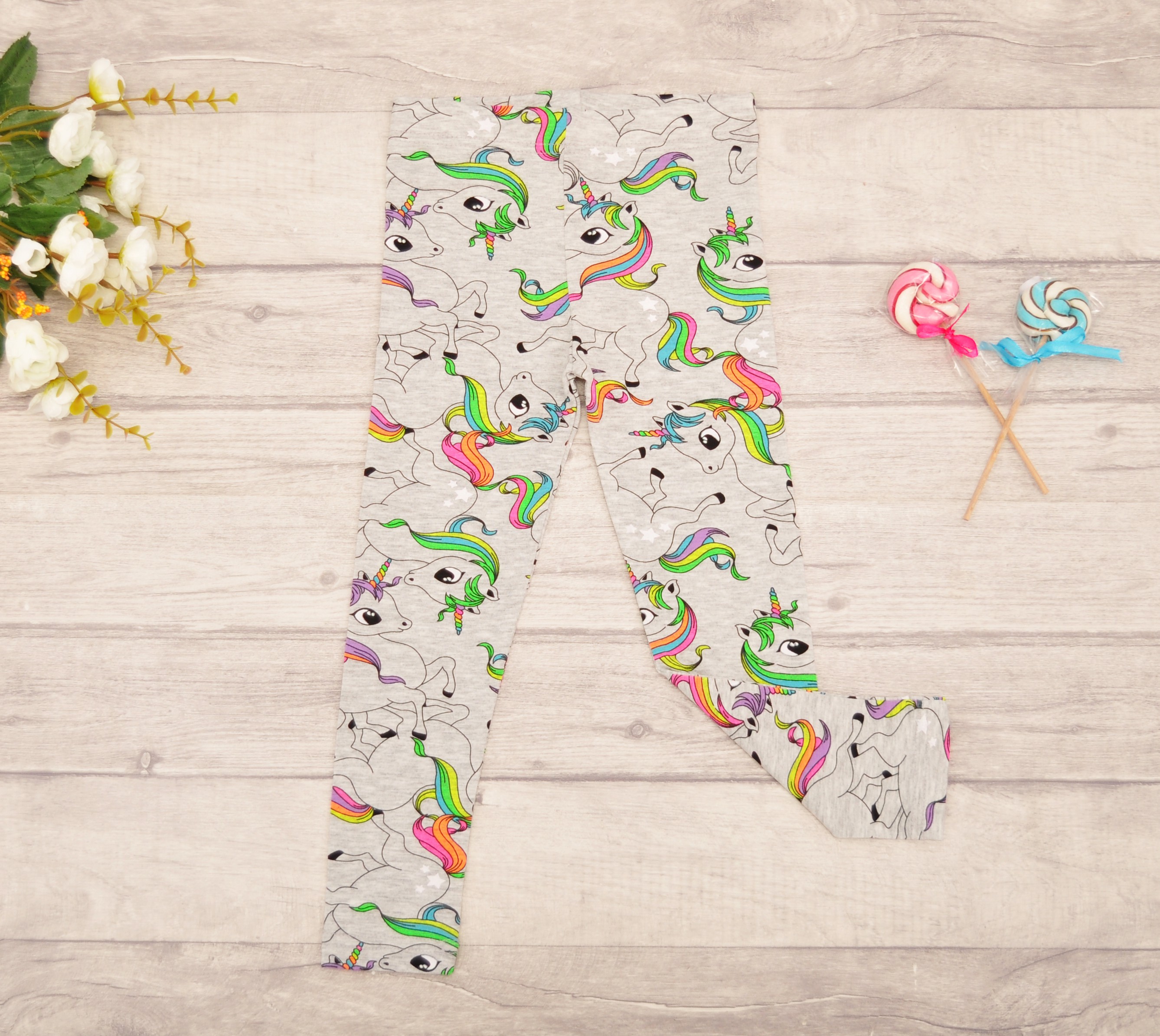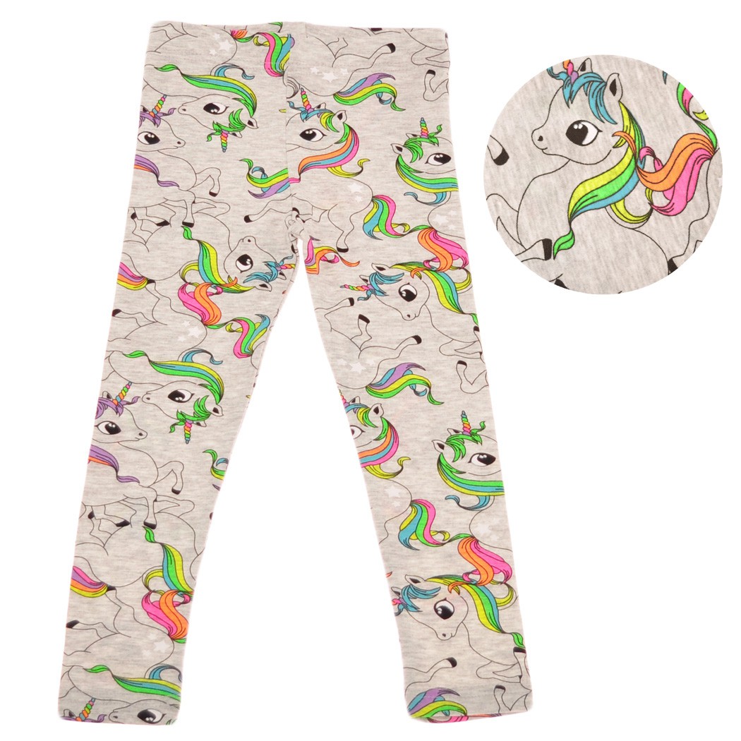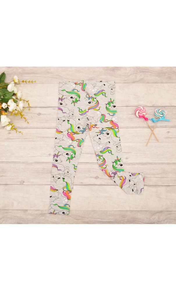Szare LEGGINSY w tęczowe jednorożce GETRY