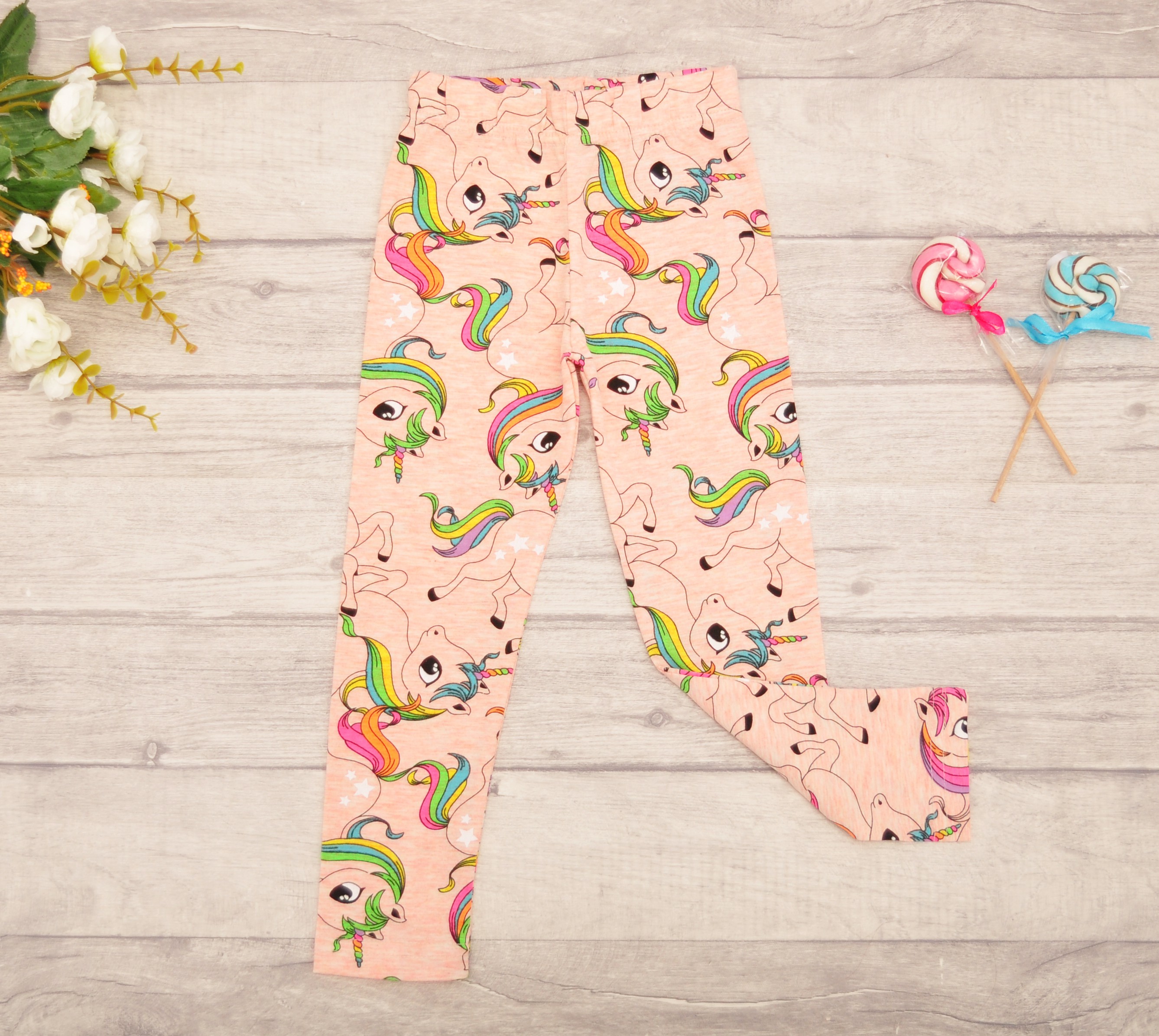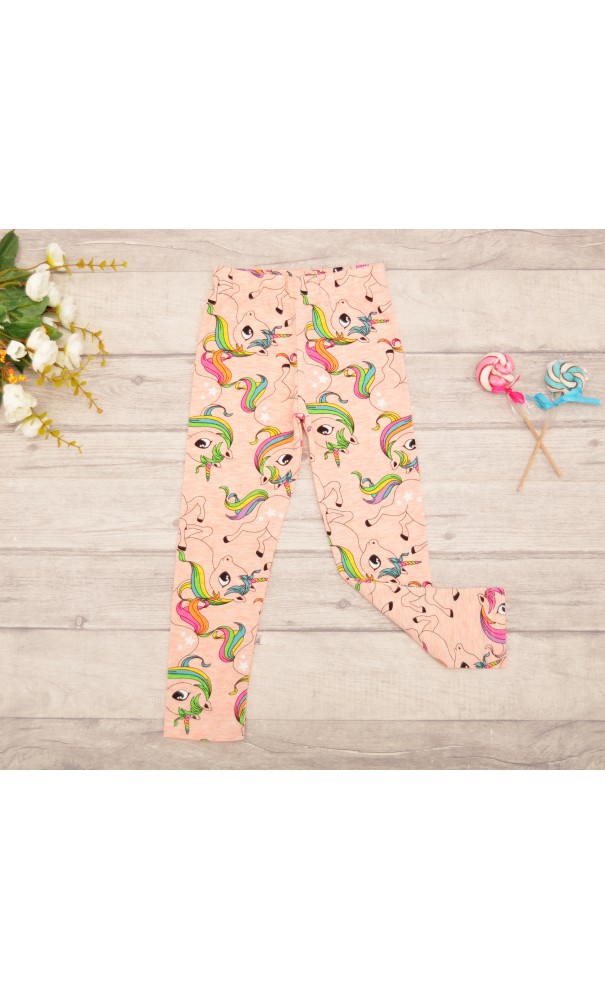Brzoskwiniowe LEGGINSY w tęczowe jednorożce GETRY