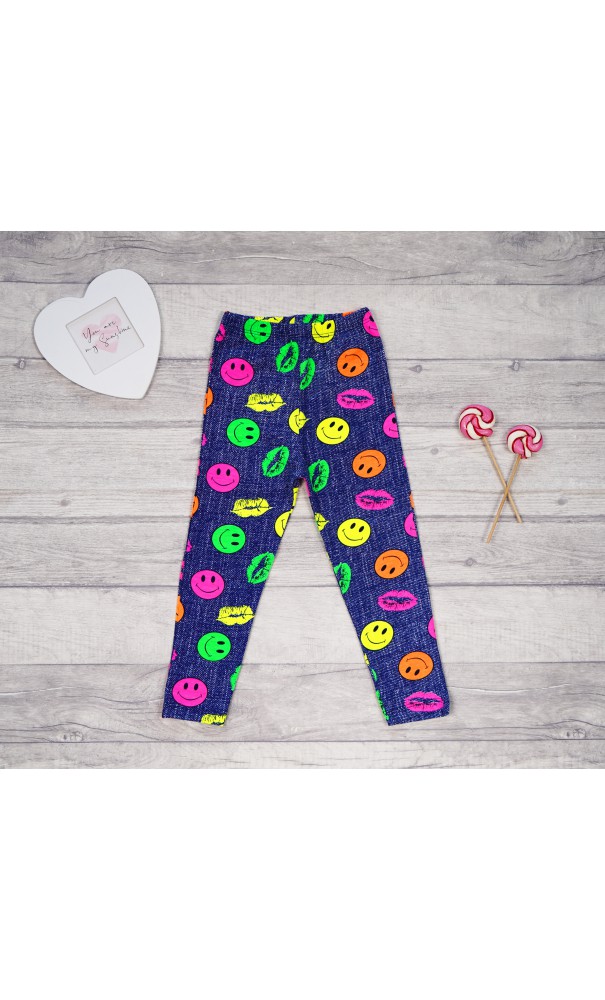 Granatowe LEGGINSY a'la jeans GETRY w neonowe usta i emotki