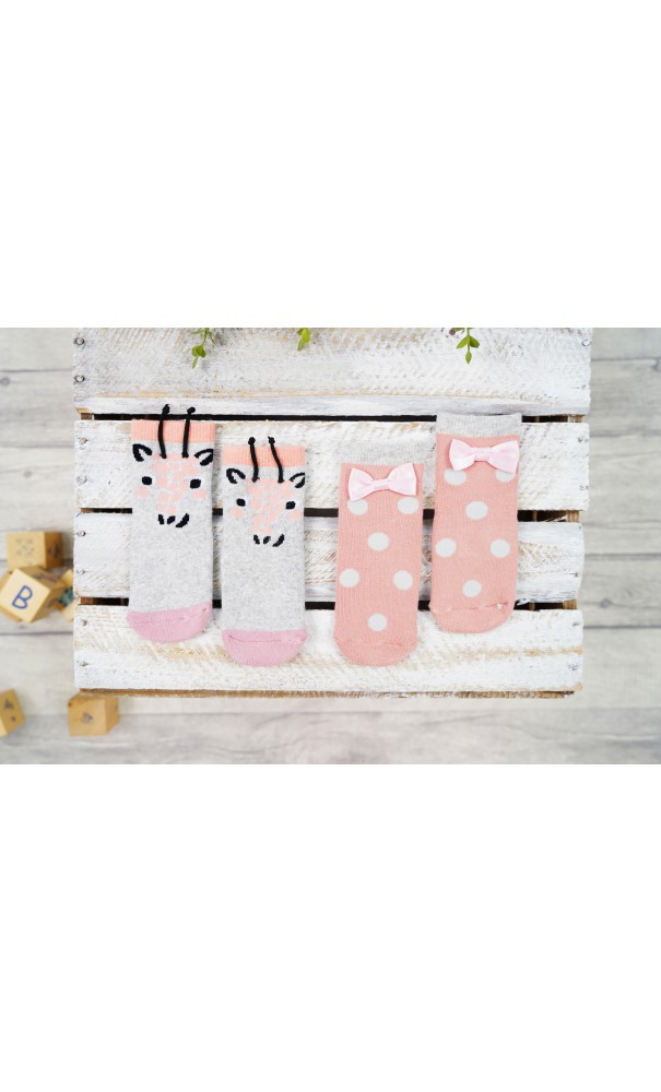 2 PAK SKARPETKI ŻYRAFA skarpety dziewczęce z silikonem D-36