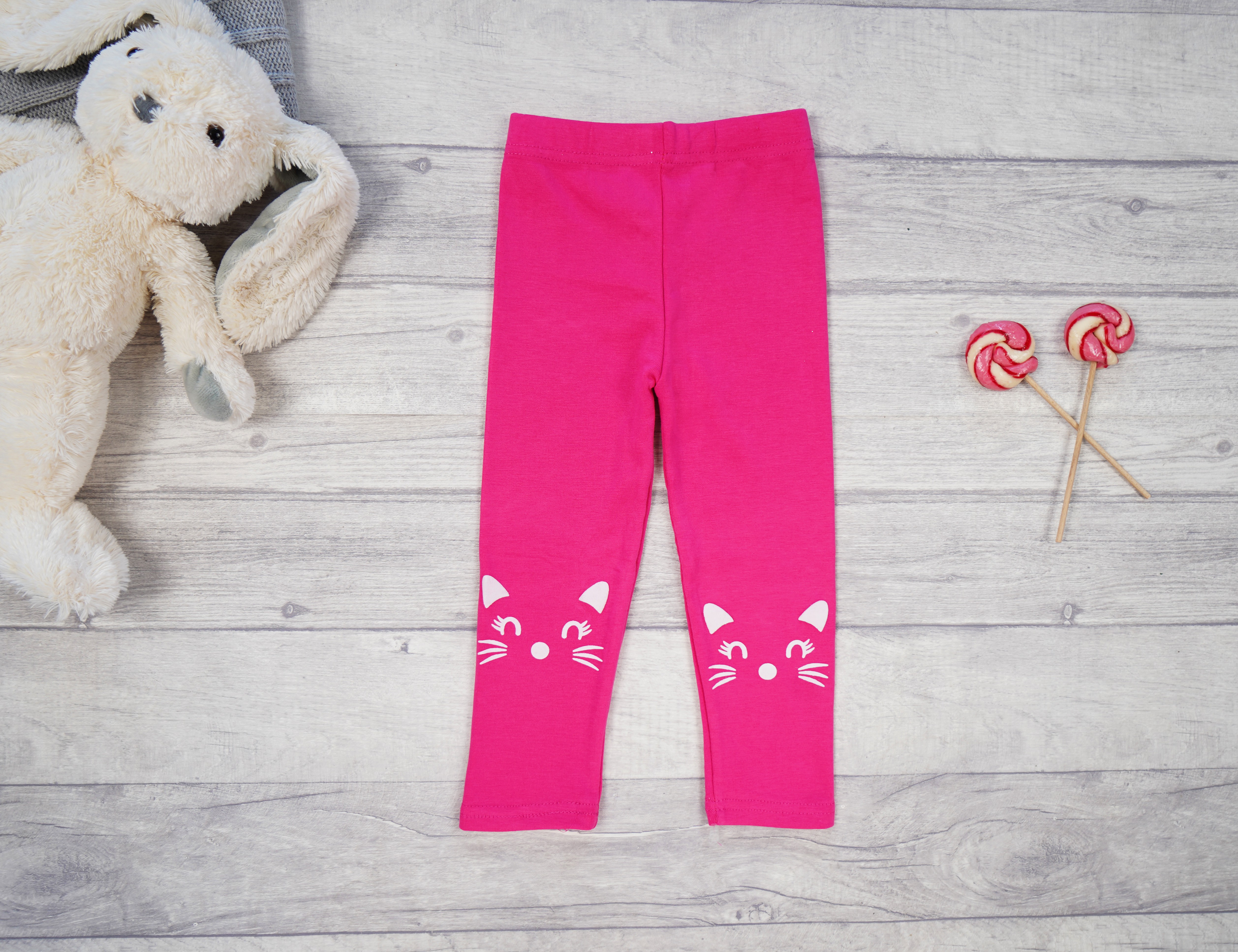 Getry długie, które dopasowują się do ciała, nie krępują ruchów i świetnie się prezentują. Uszyte zostały z intensywnej, różowej tkaniny z nadrukiem kociaków na kolanach. Materiał gwarantuje wygodę i swobodne ruchy dziecka oraz odpowiednią termoregulację. W pasie posiadają wygodną płaską gumkę.