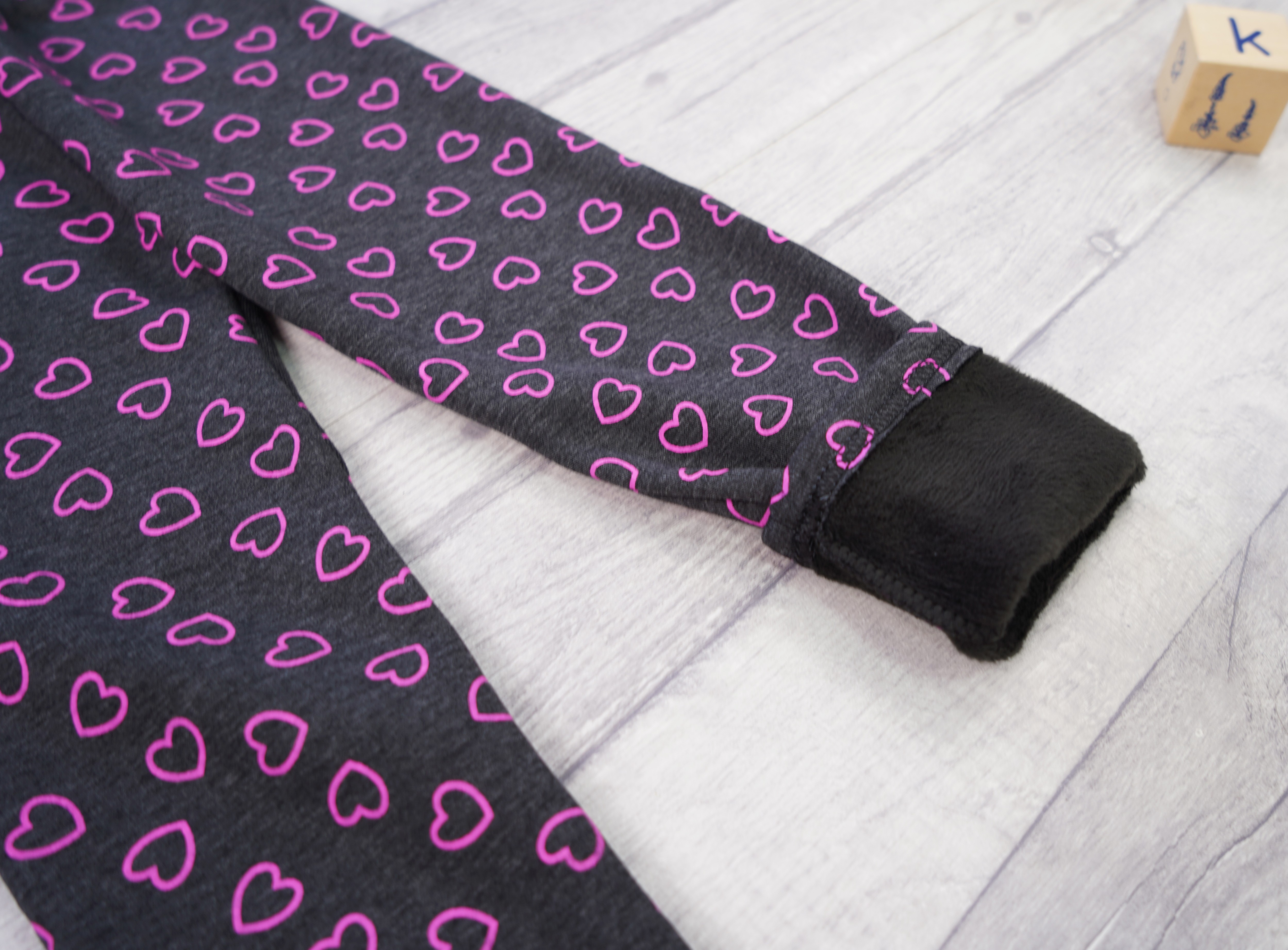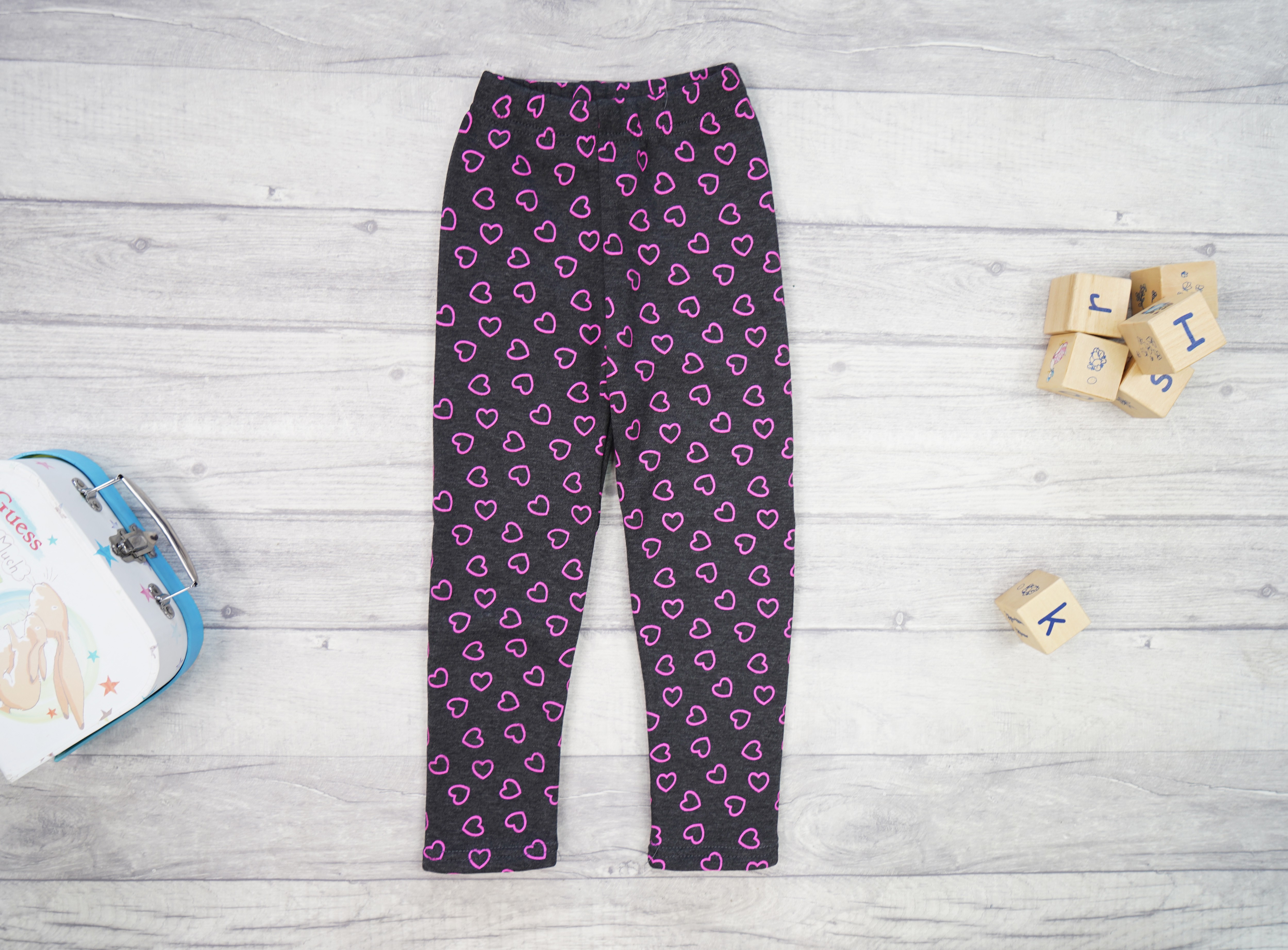Grafitowe legginsy ocieplane na futerku w serduszka.