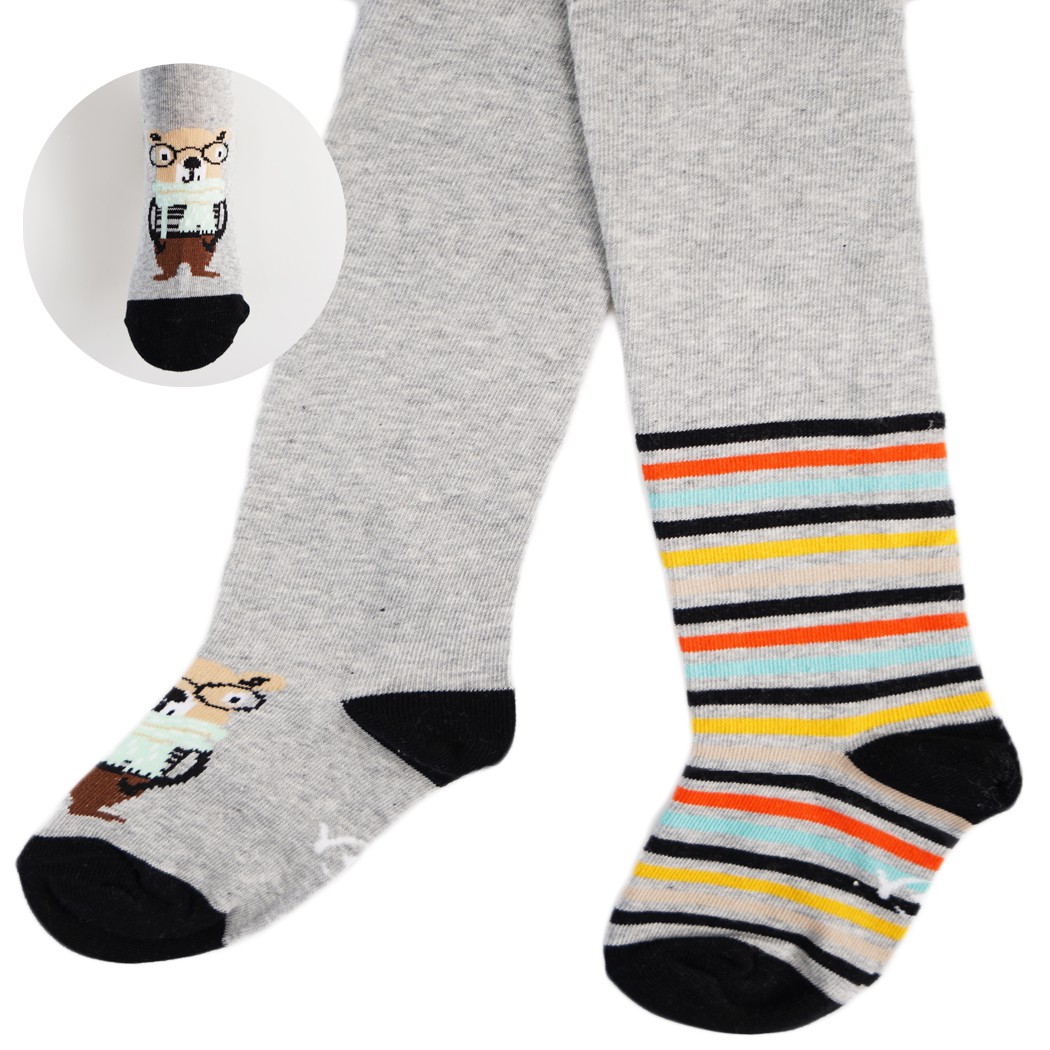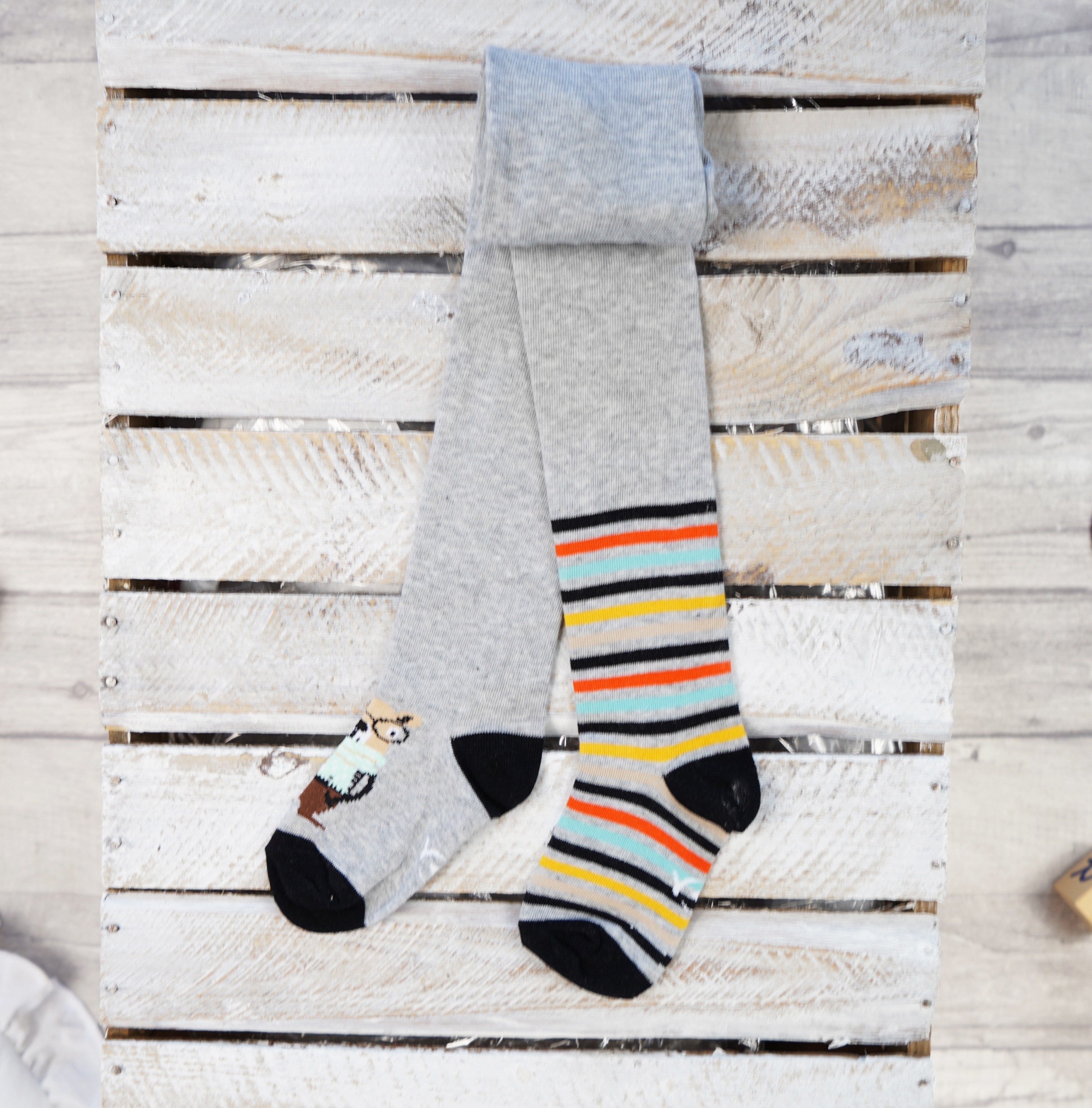 Szare rajstopki bawełniane dla chłopca w kolorowe paski.