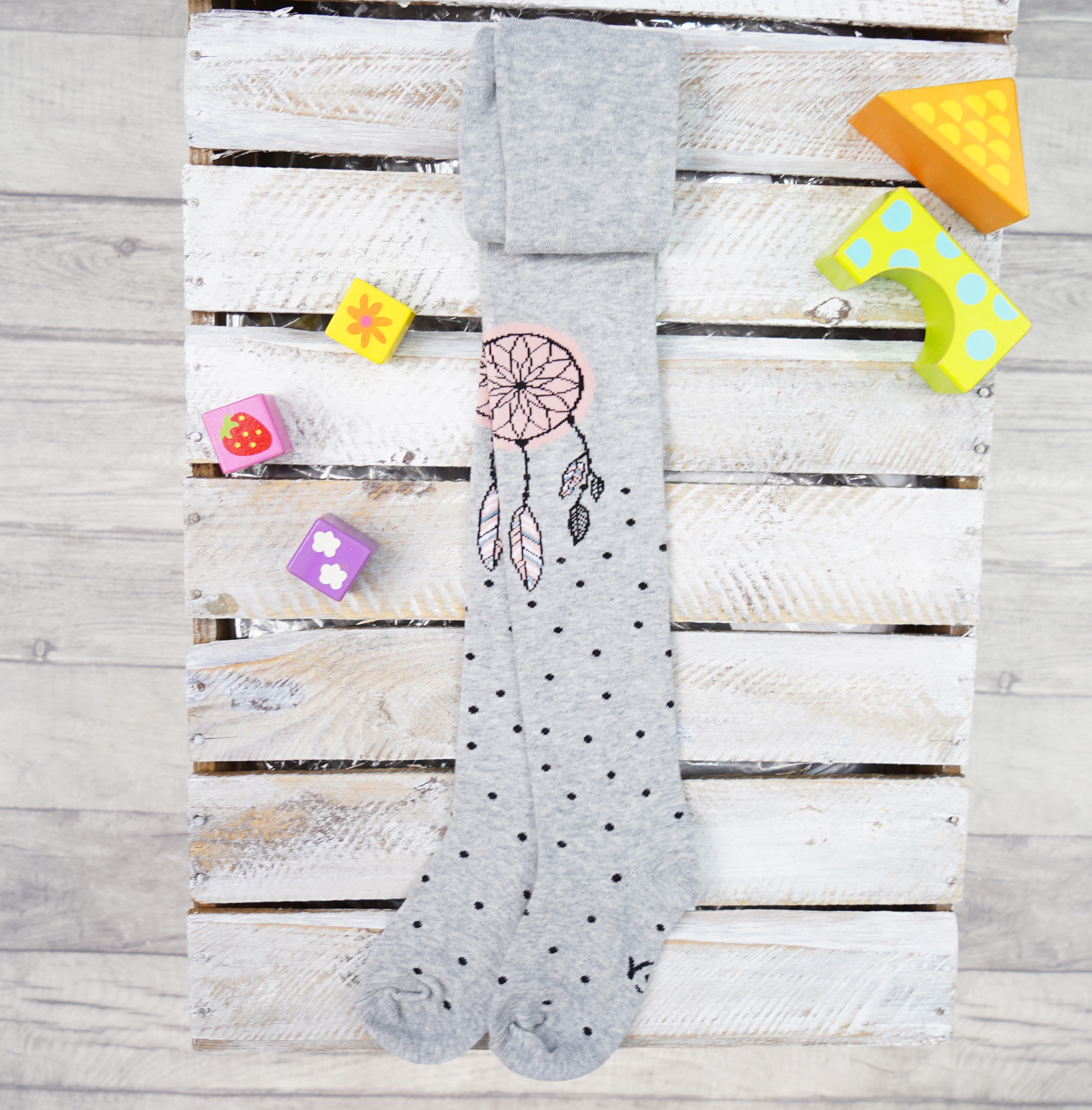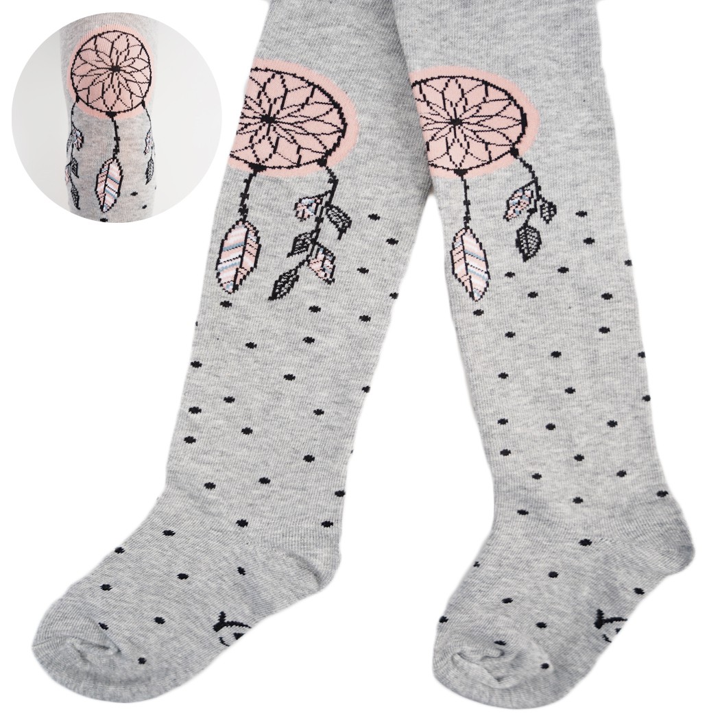 Szare rajstopki bawełniane dla dziewczynki z łapaczem snów.