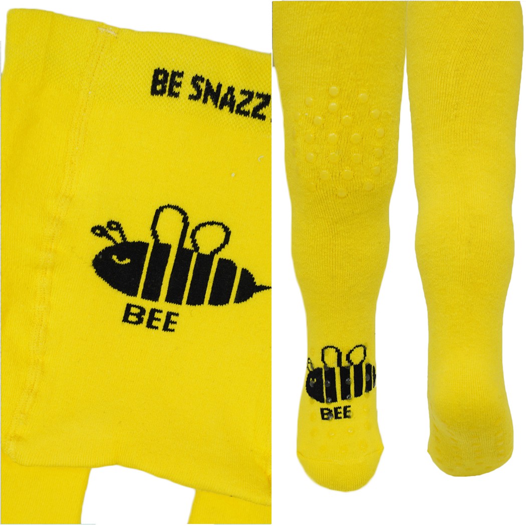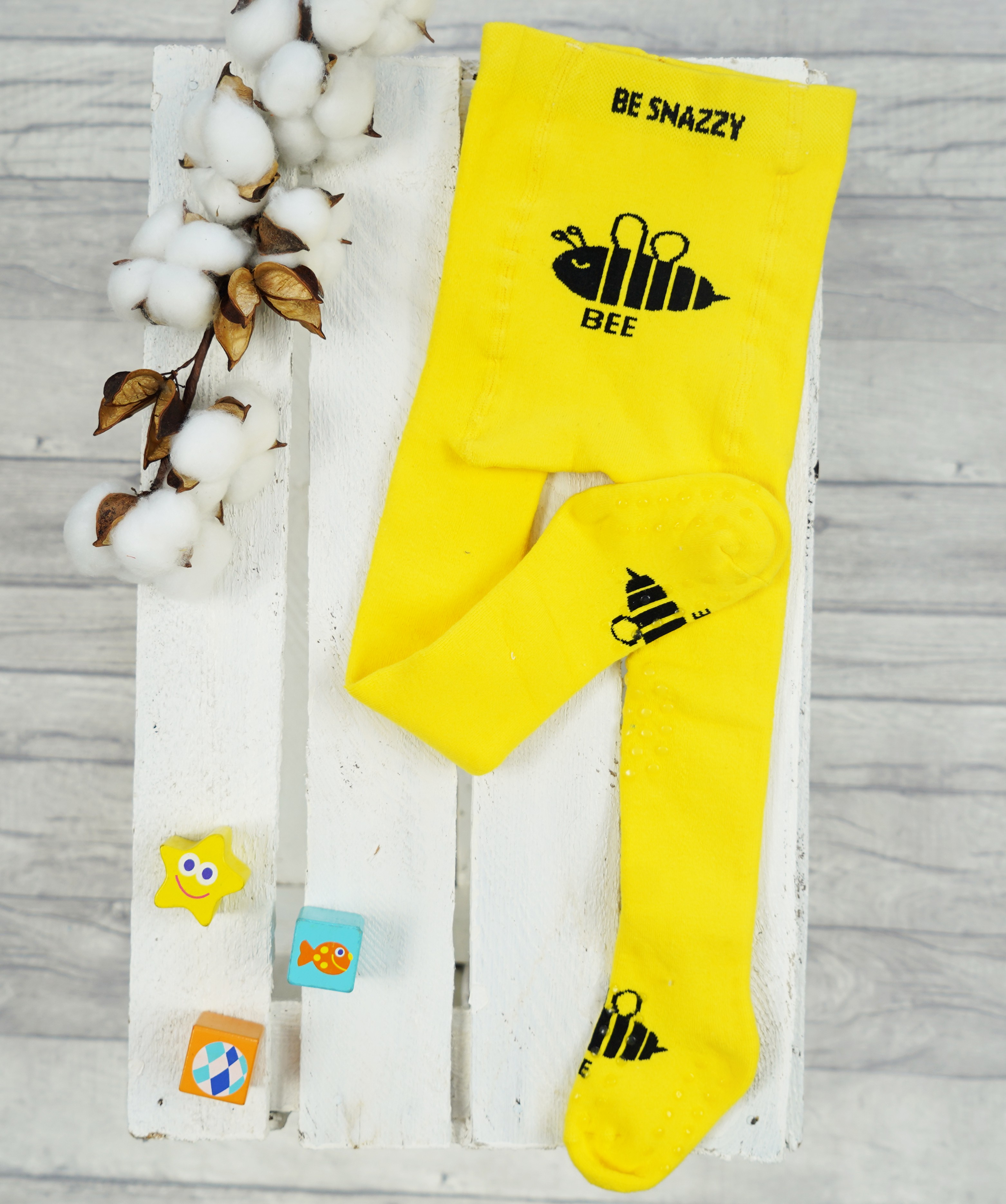 Żółte rajstopki frotte dla dziecka z pszczółką.