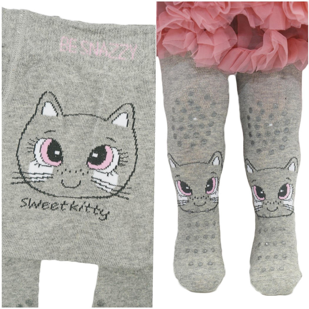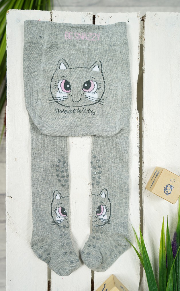 Szare rajstopki dla dziecka z kotem.