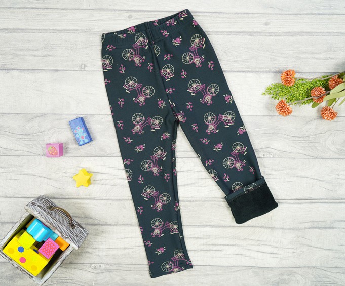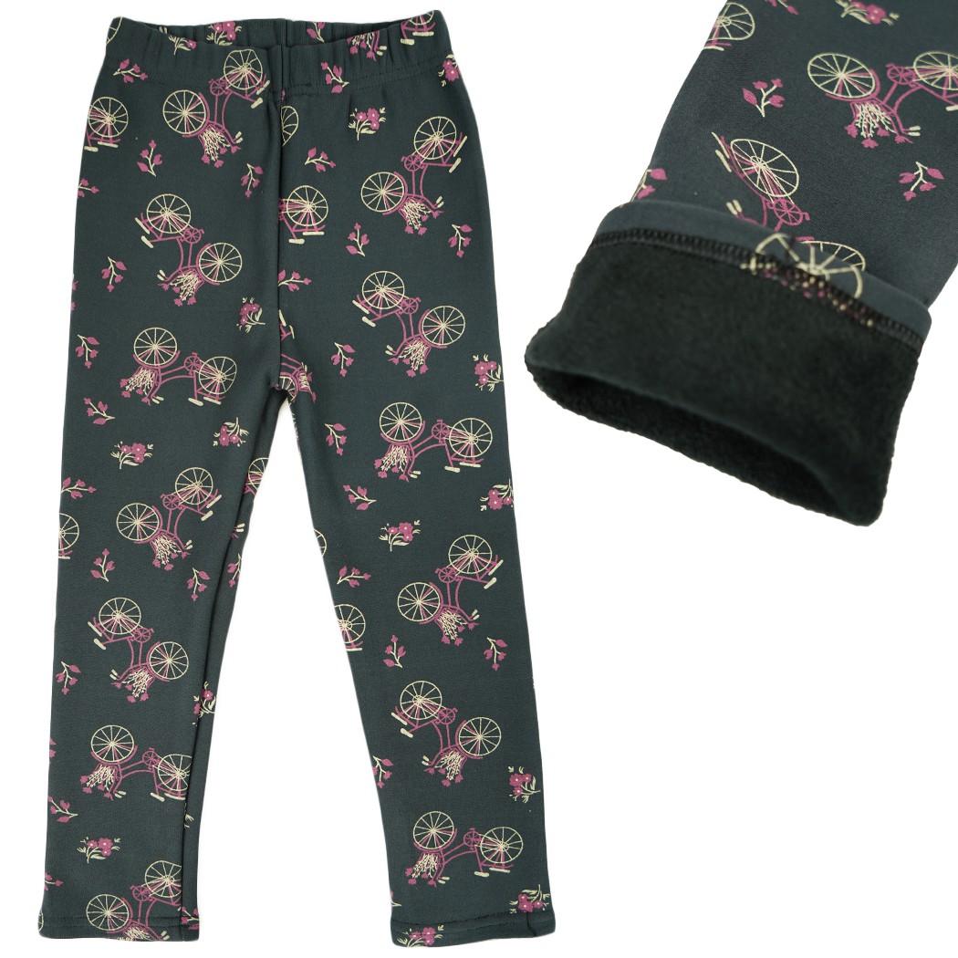 Grafitowe ocieplane legginsy dla dziewczynki z rowerami.