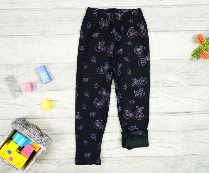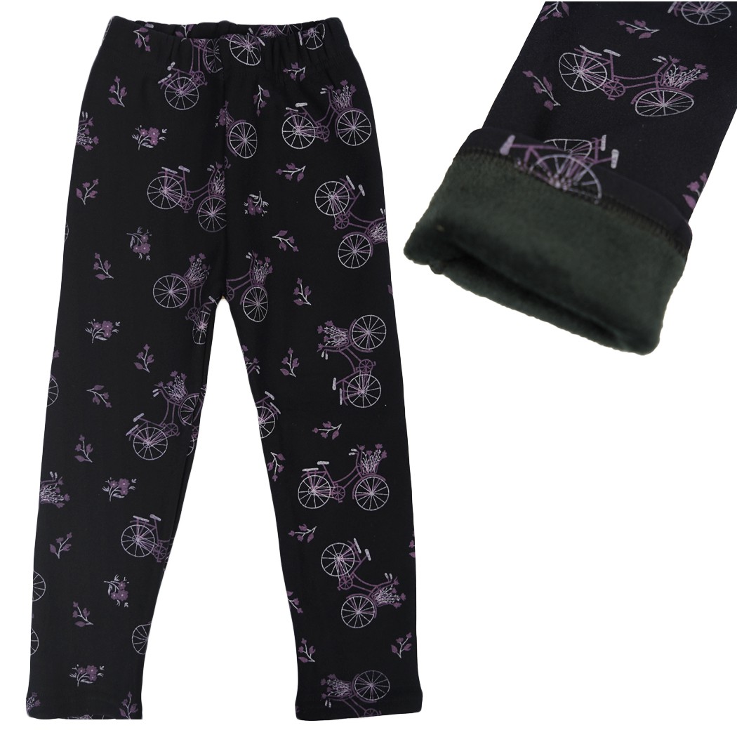 Czarne legginsy ocieplane dla dziewczynki z rowerami.