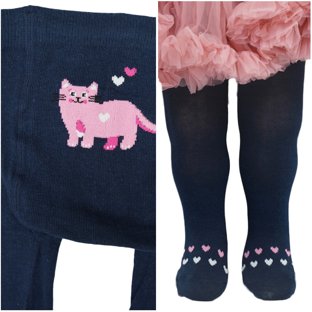 RAJSTOPY dziecięce granatowe różowy kot wzór 662