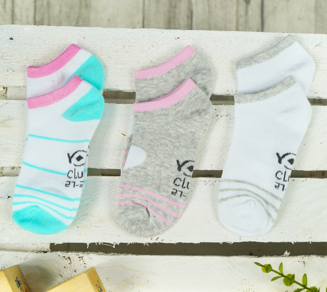 Skarpetki stopki białe i szare z kolorowymi akcentami służą nie tylko jako ozdoba, ale przede wszystkim pełnią funkcję ochronną. Skarpety bawełniane dla dziewczynki przyczyniają się do utrzymania prawidłowej temperatury ciała dziecka. Zapewniają doskonały przepływ powietrza, a ich krótka forma powoduje, że nie są widoczne przy noszeniu krótszego obuwia przed kostkę.