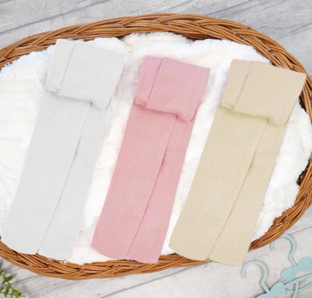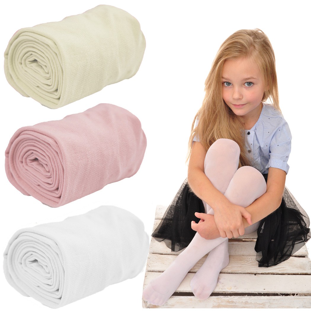 3 PARY rajstop dziewczęcych z mikrofibry: białe, ecru, pudrowy róż