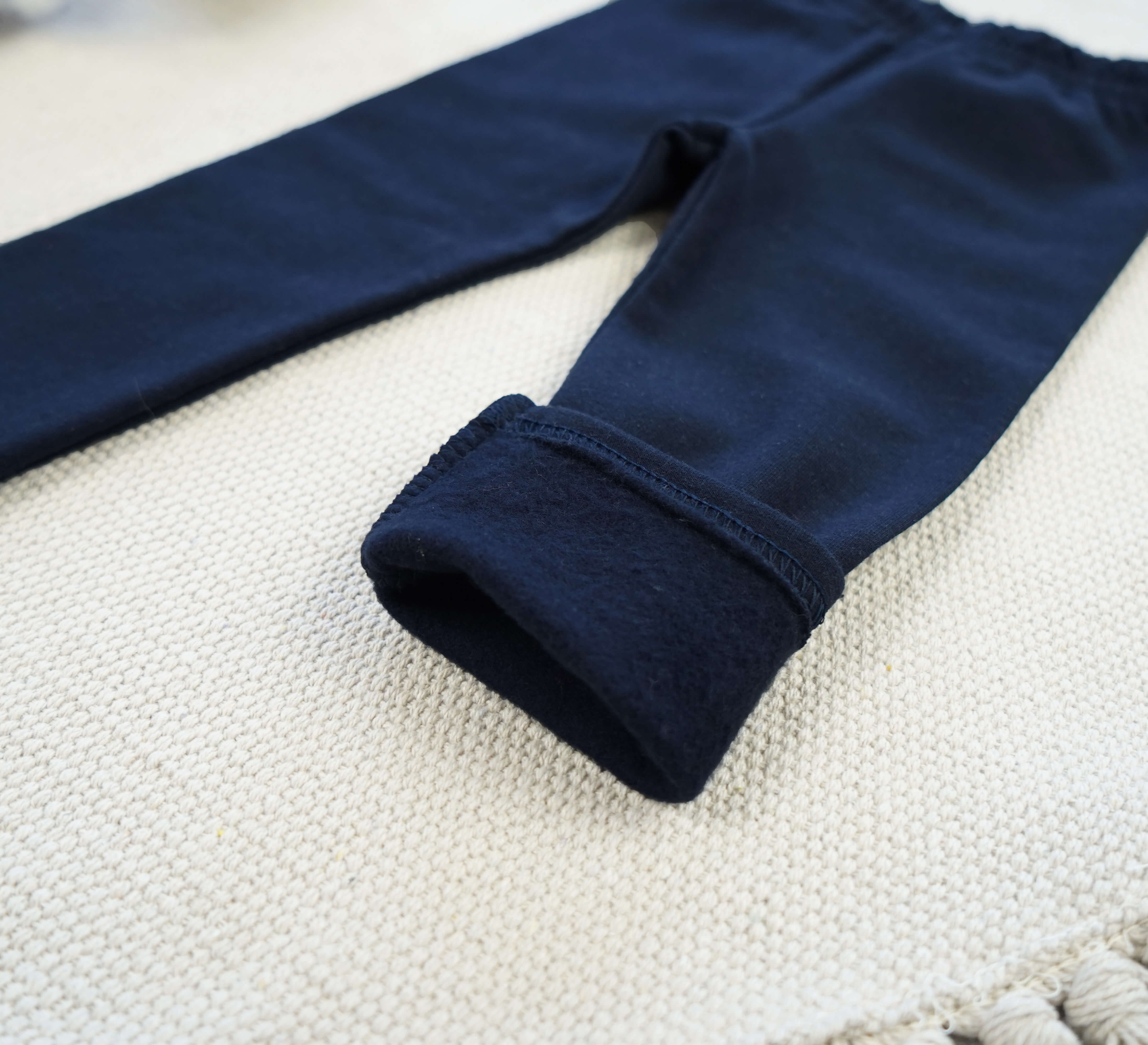 Granatowe legginsy ocieplane futerkiem dla dzieci