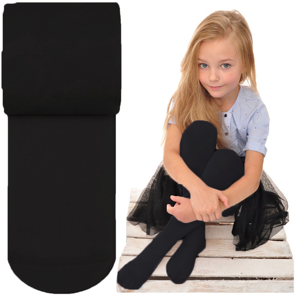 Rajstopy dziewczęce z mikrofibry w kolorze czarnym.