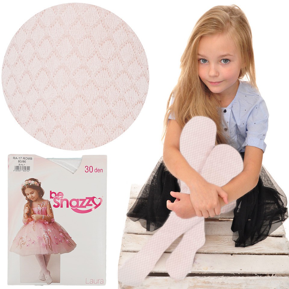 Białe RAJSTOPY dziewczęce ROMBY mikrofibra ażurowe rajstopki 30 DEN KOMUNIA