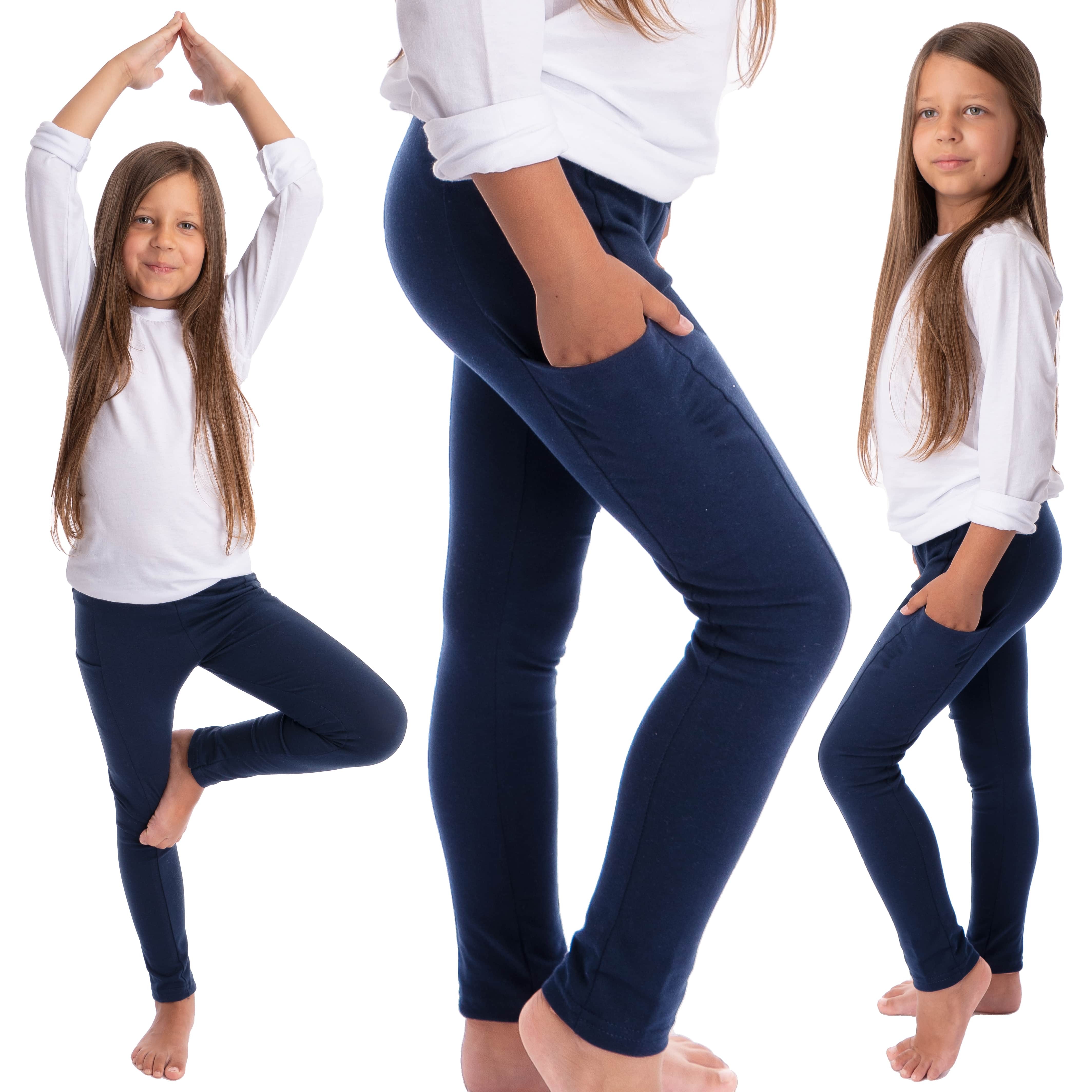 Bawełniane długie legginsy dziewczęce z 2 kieszeniami
